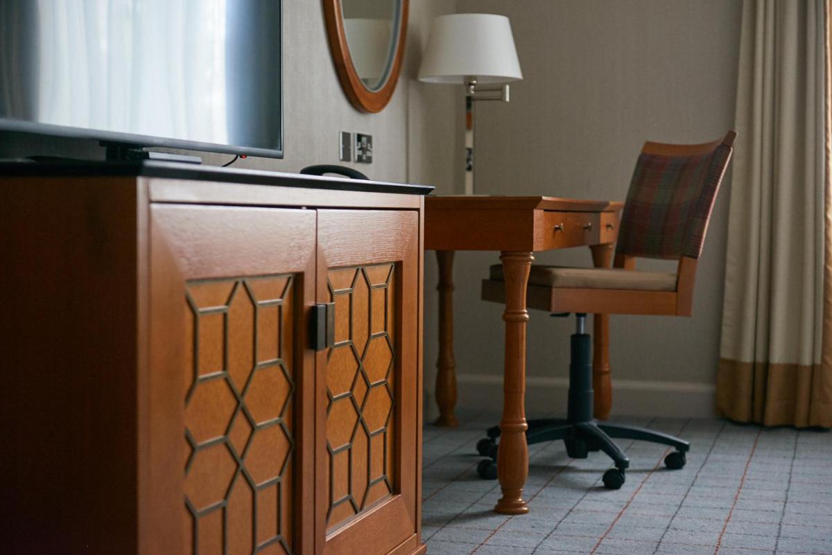 Le camere e le suite sono arredate con gusto, combinando lo stile tradizionale scozzese con il comfort moderno. Molte offrono viste sul campo da golf o sui parchi circostanti, garantendo un soggiorno sereno. L'architettura storica della tenuta aggiunge un tocco di maestosità all'intera esperienza.