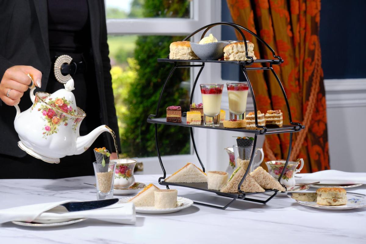 Il Dalmahoy propone diverse opzioni di ristorazione, dal ristorante formale che serve cucina scozzese contemporanea con prodotti locali, al bar più informale perfetto per un drink dopo il golf. La colazione è celebre per l'ampia scelta, e la struttura è anche popolare per i tradizionali tè pomeridiani con vista sui giardini.