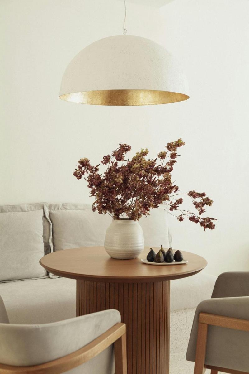 Il design interno fonde l'eleganza classica con tocchi moderni e richiami all'eredità veneziana dell'isola. Le camere, le suite e i padiglioni sono progettati per massimizzare la vista sul Mar Ionio, con arredi sofisticati, tessuti pregiati e dettagli di lusso che assicurano un soggiorno di raffinata opulenza.