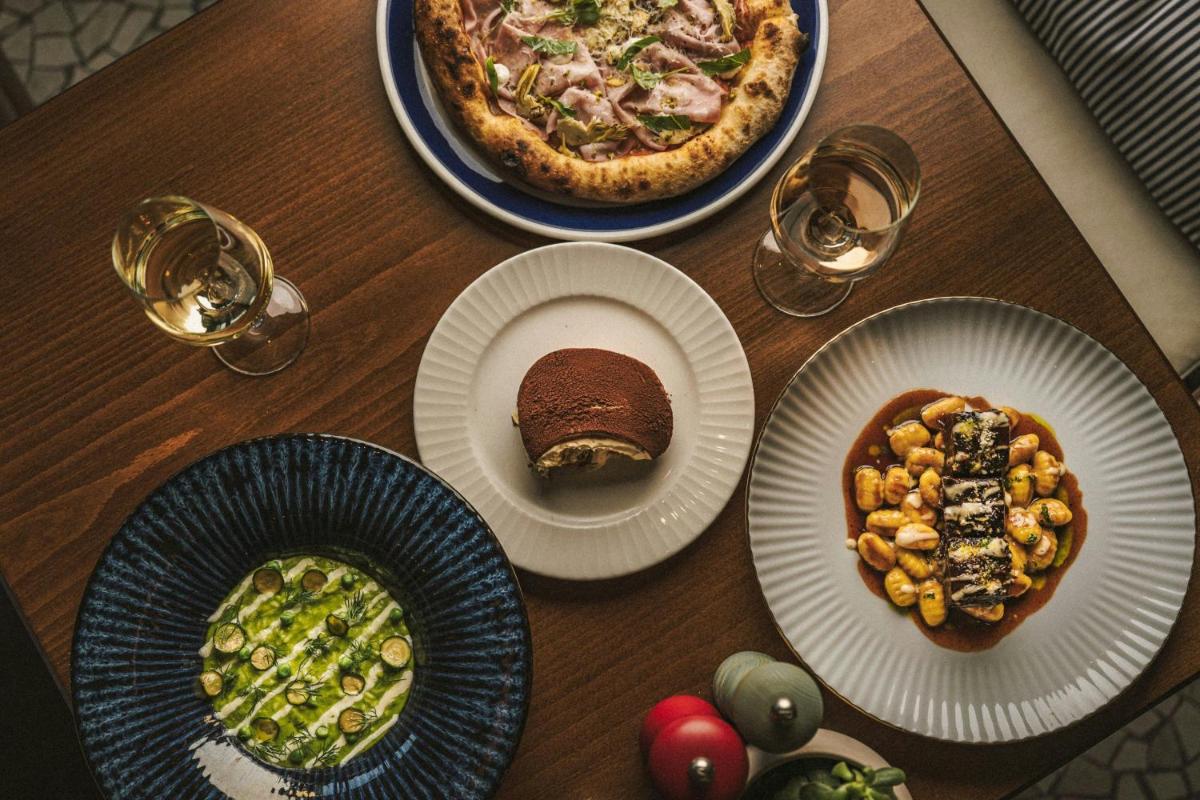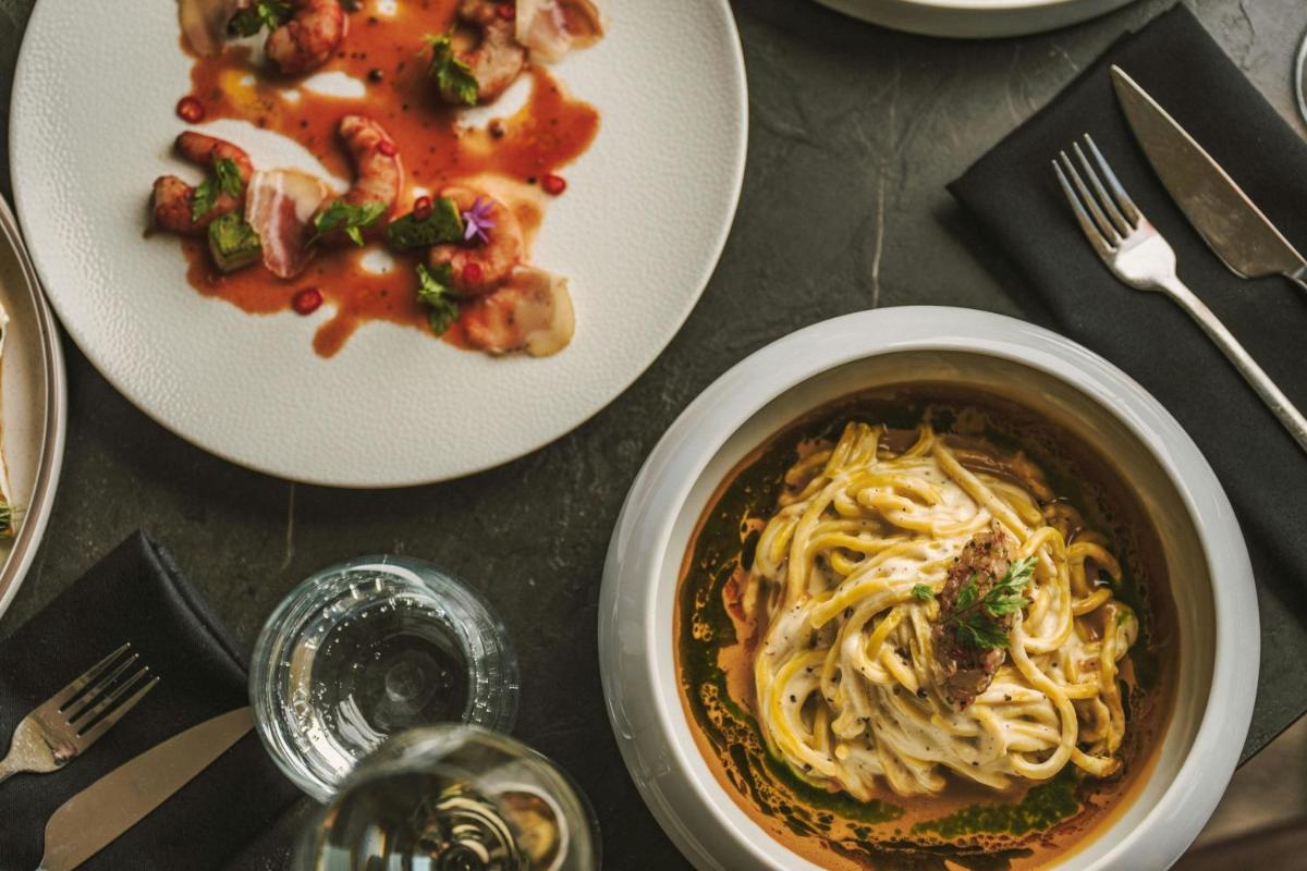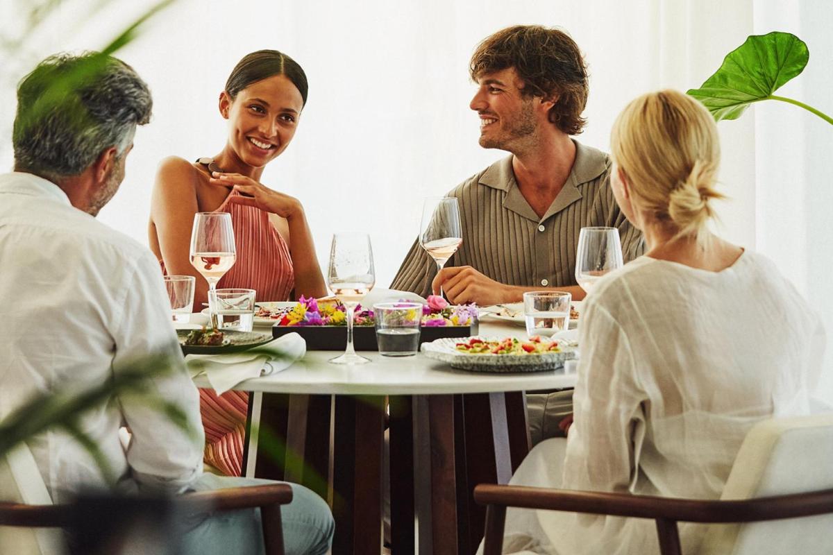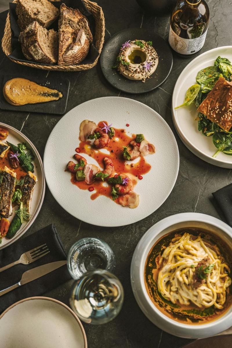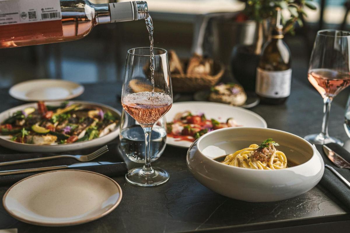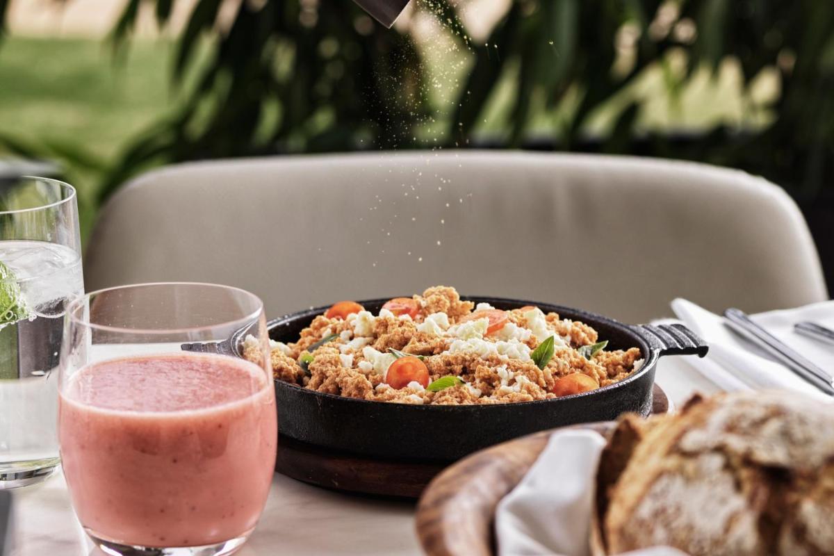 La proposta culinaria al Domes Miramare è un viaggio attraverso i sapori mediterranei e internazionali, con particolare attenzione agli ingredienti locali di Corfù. Il ristorante principale e i bar sulla spiaggia offrono un'ampia selezione di piatti gourmet e cocktail d'autore, spesso accompagnati da musica dal vivo e una vista mare spettacolare.
