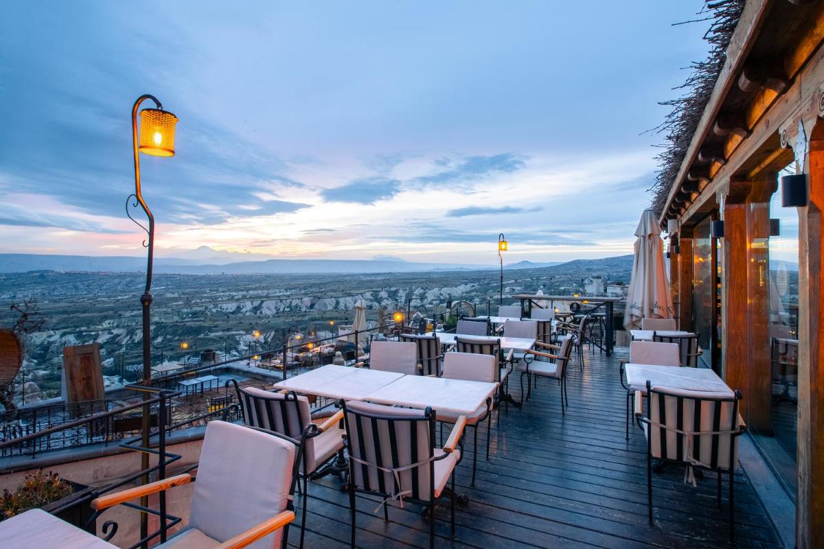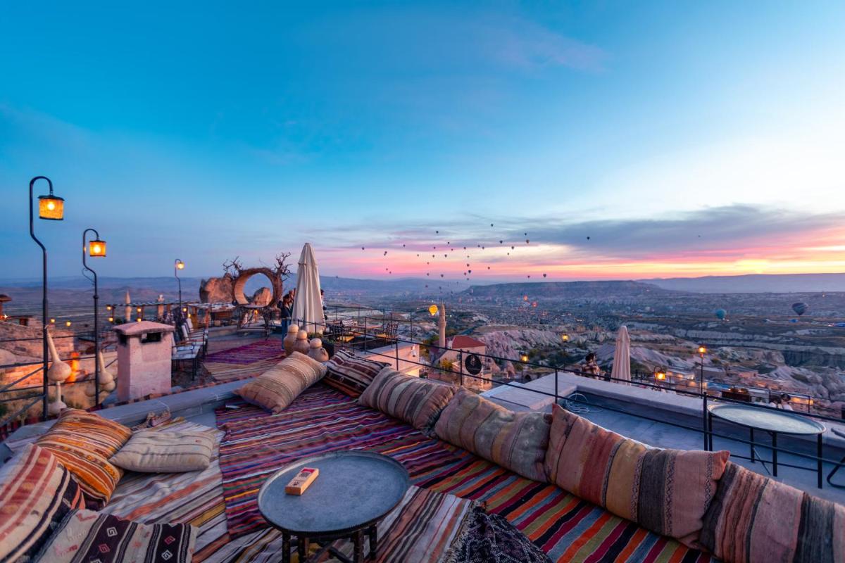 Il punto focale dell'hotel è la sua vasta terrazza panoramica, rinomata per offrire una delle migliori viste a 360 gradi sulla Valle dei Piccioni e sul Castello di Uchisar. È il luogo ideale per gustare la colazione tradizionale turca o sorseggiare un tè al tramonto, immersi in un panorama lunare unico al mondo. L'hotel è anche un eccellente punto di partenza per esplorare le valli nascoste e i siti storici della regione.