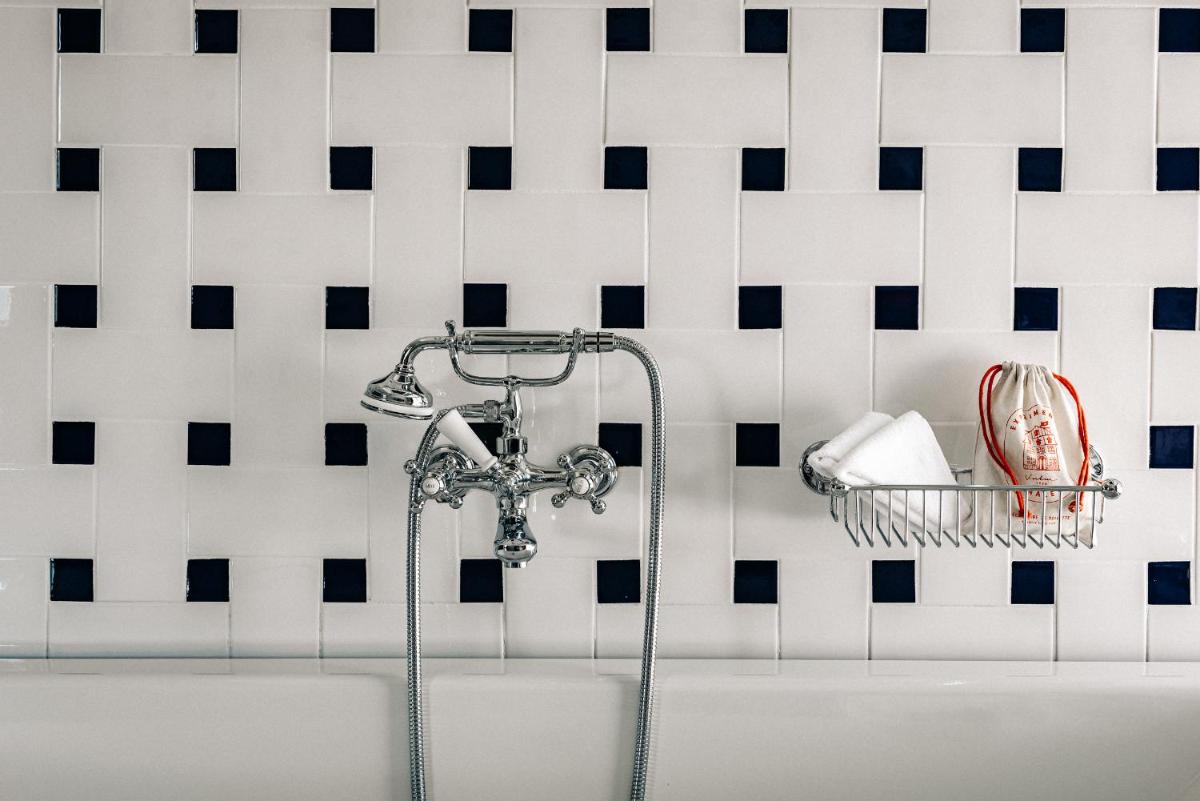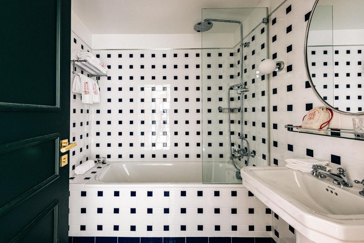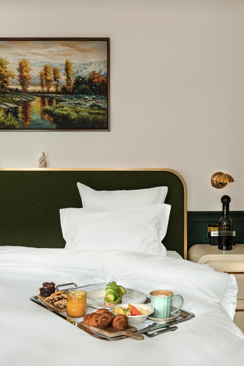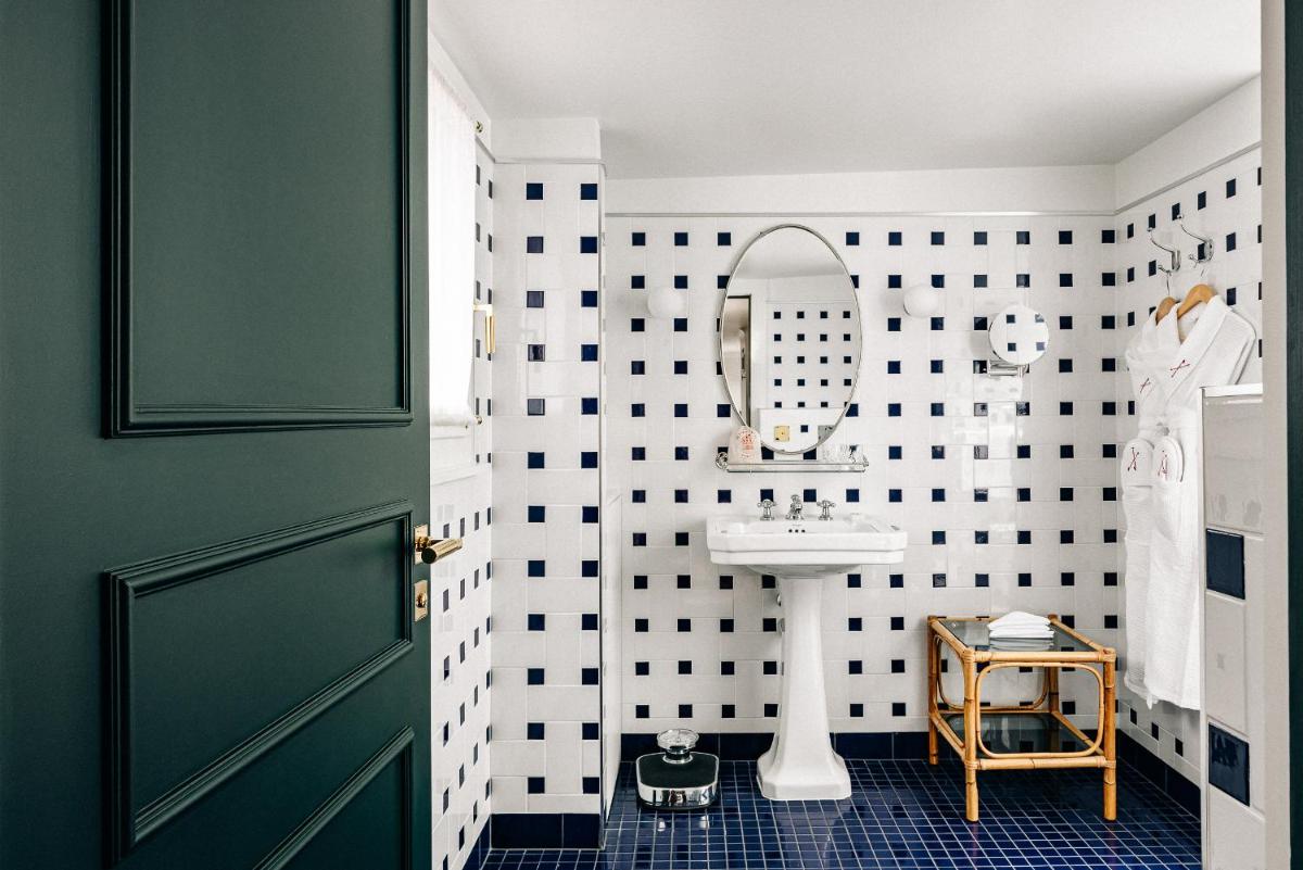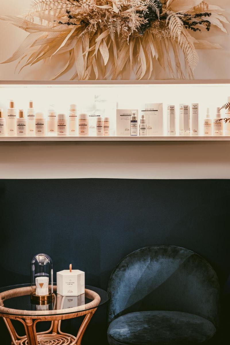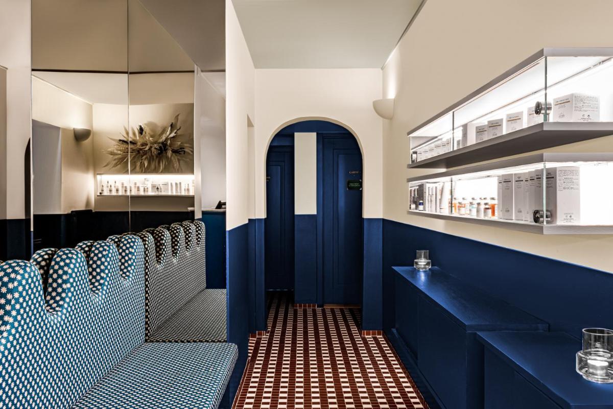 Le 39 camere e suite, alcune con la propria vasca idromassaggio esterna privata, sono state progettate da Dorothée Meilichzon. Il design si ispira allo stile Mid-Century Modern, con l'uso di legni scuri, lana, velluti e colori caldi che creano un contrasto affascinante con il paesaggio alpino esterno. Il risultato è un ambiente elegante e giocoso.