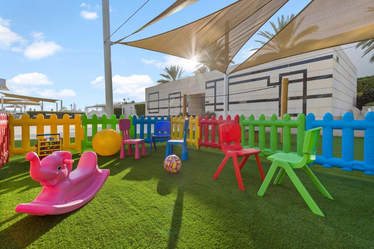 Il resort vanta una splendida spiaggia di sabbia bianca e una piscina a sfioro climatizzata che si affaccia direttamente sul Golfo e sulla Moschea. Il servizio in spiaggia è eccellente, e le aree prendisole offrono un rifugio di pace. La possibilità di ammirare l'architettura della Moschea mentre ci si rilassa in piscina è un'esperienza visivamente unica.