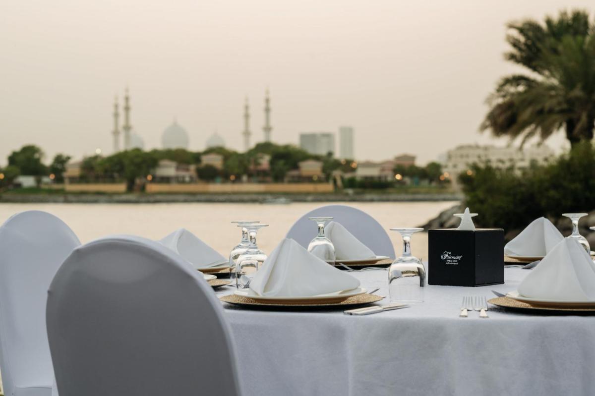 Il Fairmont Bab Al Bahr ospita una collezione di ristoranti pluripremiati che offrono un viaggio culinario globale, dal fine dining italiano alla cucina mediorientale. L'offerta è completata da lounge e bar eleganti, che offrono un ambiente ideale per socializzare e gustare cocktail artigianali con un'atmosfera vibrante e lussuosa.