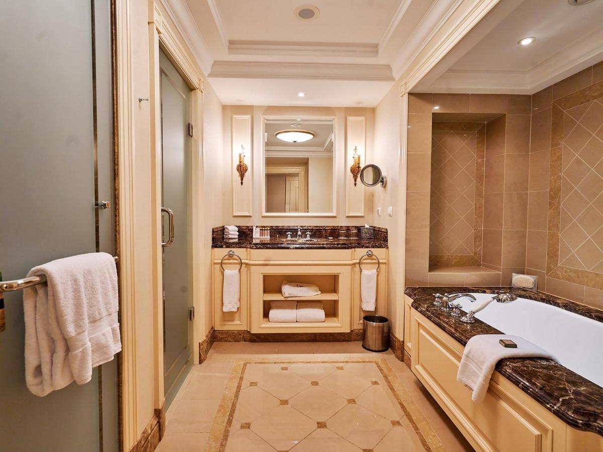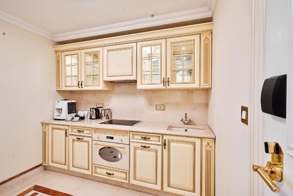 Rooms at the Fairmont Grand Hotel Kyiv include a flat-screen TV, minibar and work desk. The private bathroom provides bathrobes, slippers and complimentary toiletries.