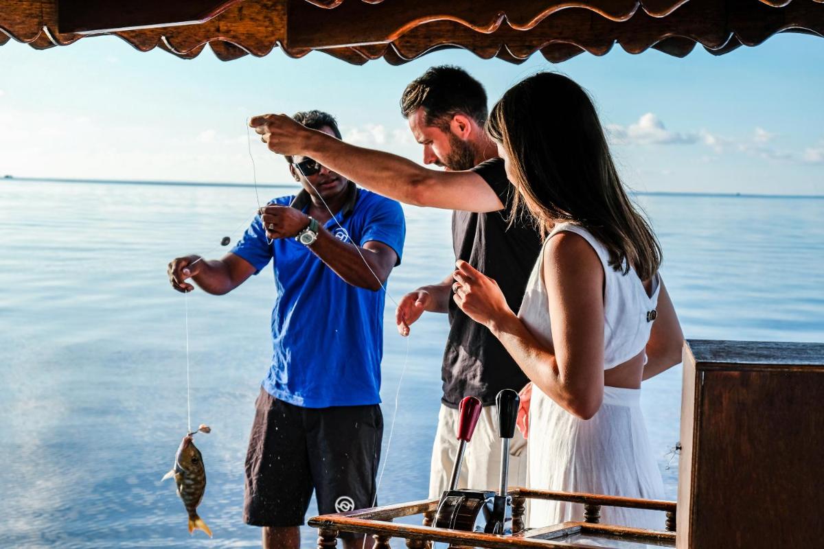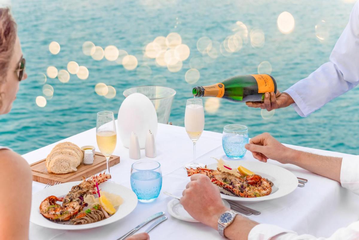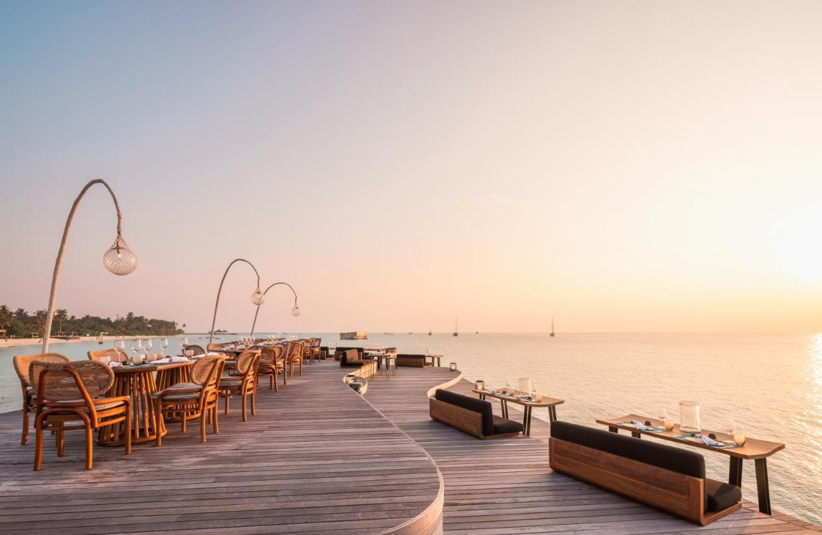 Fairmont Sirru Fen Fushi vanta un'eccellente selezione di esperienze culinarie. Tra queste spiccano Kata (cucina asiatica di alto livello), Azure (frutti di mare freschi) e il bar sull'acqua Onu Onu. Dalle cene private sulla spiaggia ai cocktail con vista sul tramonto, l'hotel assicura che ogni pasto sia una celebrazione dei sapori freschi e dell'ambiente tropicale.