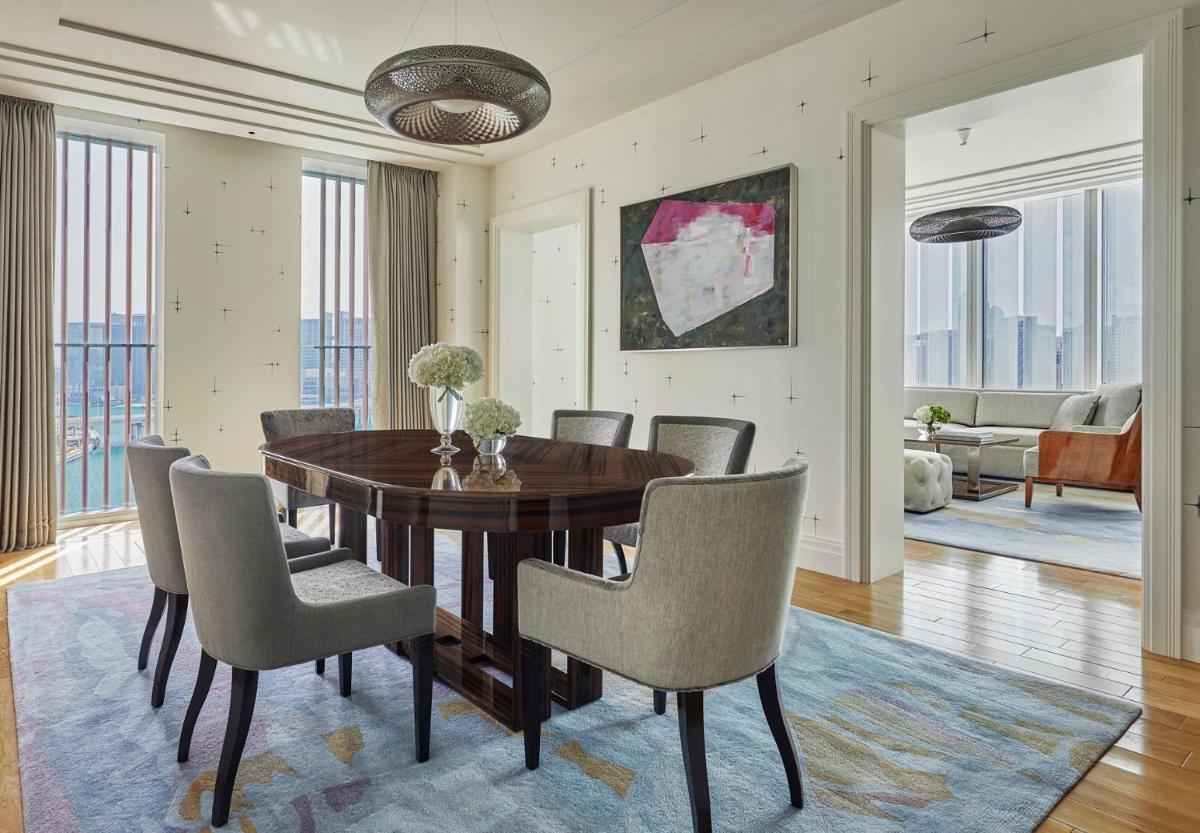 Suite Executive Four Seasons dotata di un elegante salotto, di uno spazio di lavoro efficiente e di una tranquilla camera da letto principale. È ideale per chi soggiorna a lungo ad Abu Dhabi. Potrete divertirvi, dedicarvi al lavoro o semplicemente rilassarvi davanti alle ampie finestre, affacciate sull’acqua e sulla città. Molto luminose, le Suite Executive Four Seasons vantano eleganti arredi con tonalità fredde e tecnologia all’avanguardia per un soggiorno ancora più confortevole. Per usufruire di maggiore spazio, è possibile collegare la Suite Executive Four Seasons a una camera adiacente. Nelle suite è possibile aggiungere al massimo 1 letto supplementare e 1 culla.