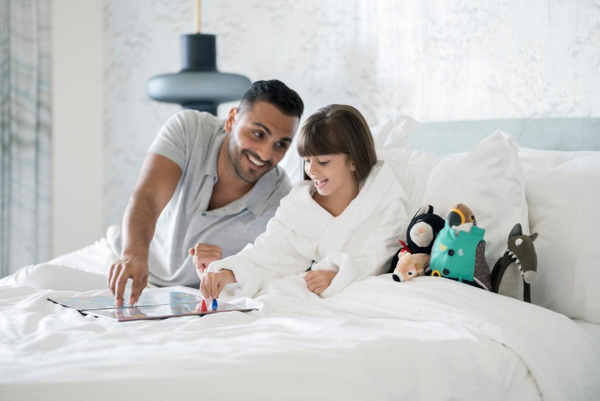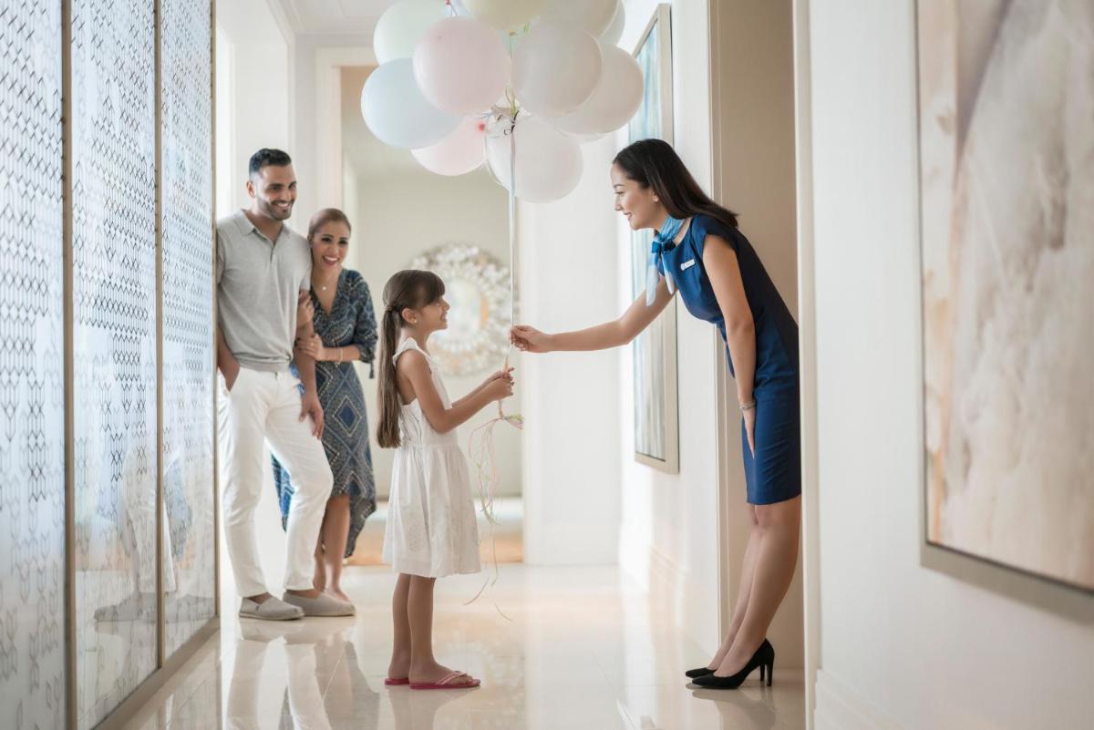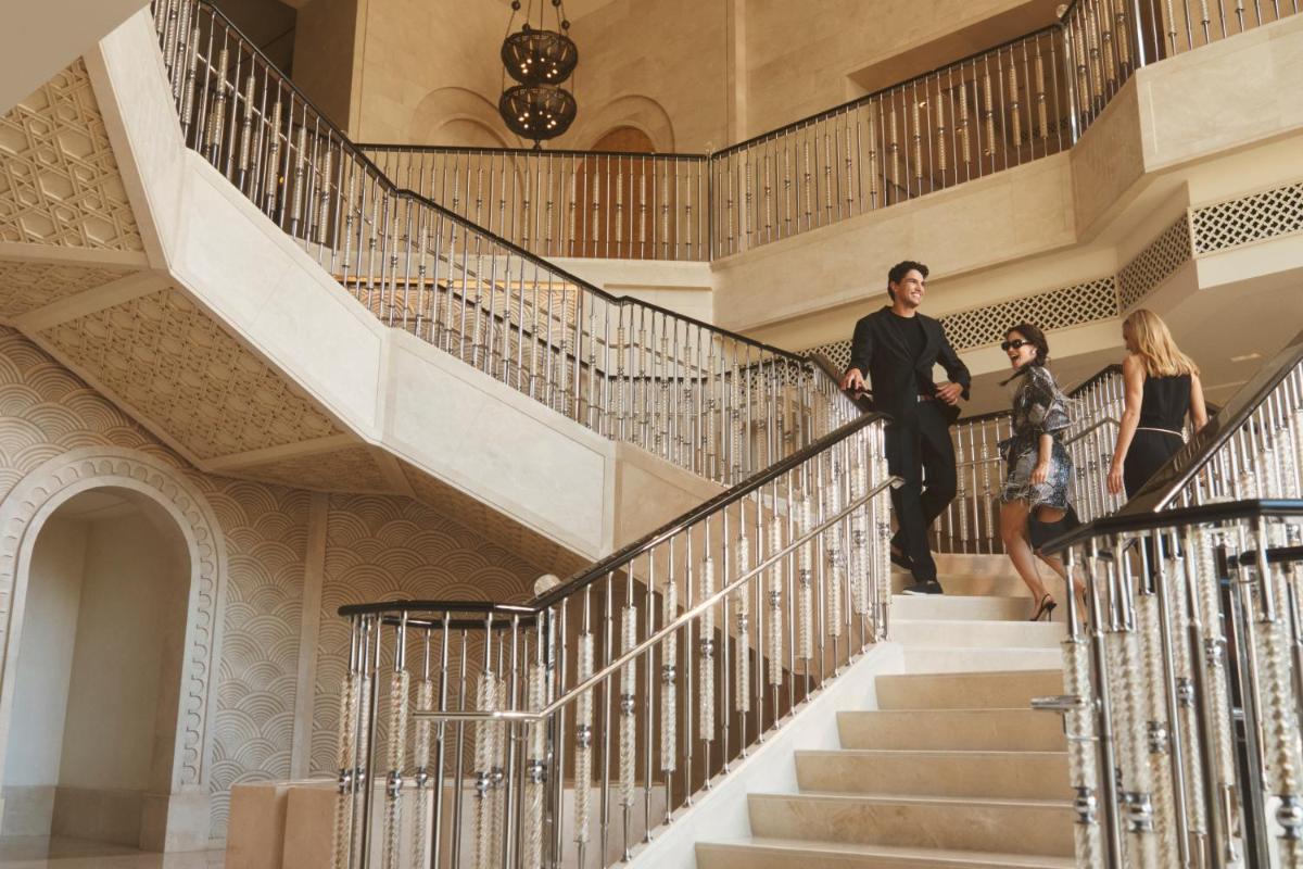 Le camere, le suite e gli spazi comuni riflettono un design chic e contemporaneo con influenze arabe discrete. L'attenzione ai dettagli è evidente in ogni elemento, dai balconi privati con vista mozzafiato alla tecnologia all'avanguardia. L'atmosfera è di lusso rilassato, ideale per vacanze in famiglia e ritiri romantici.