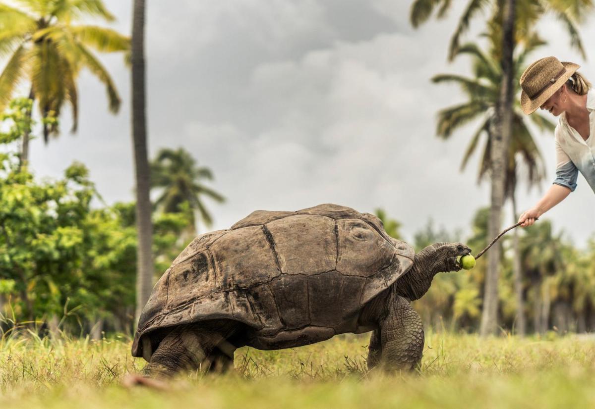 L'isola di Desroches è circondata da 14 km di spiagge bianche e protetta da una barriera corallina spettacolare, rendendola un punto eccellente per immersioni e snorkeling, inclusa l'esplorazione di relitti sommersi. A terra, l'isola offre sentieri ciclabili da percorrere con le biciclette fornite dal resort, permettendo agli ospiti di scoprire la flora e fauna endemica e il centro di conservazione delle tartarughe giganti.