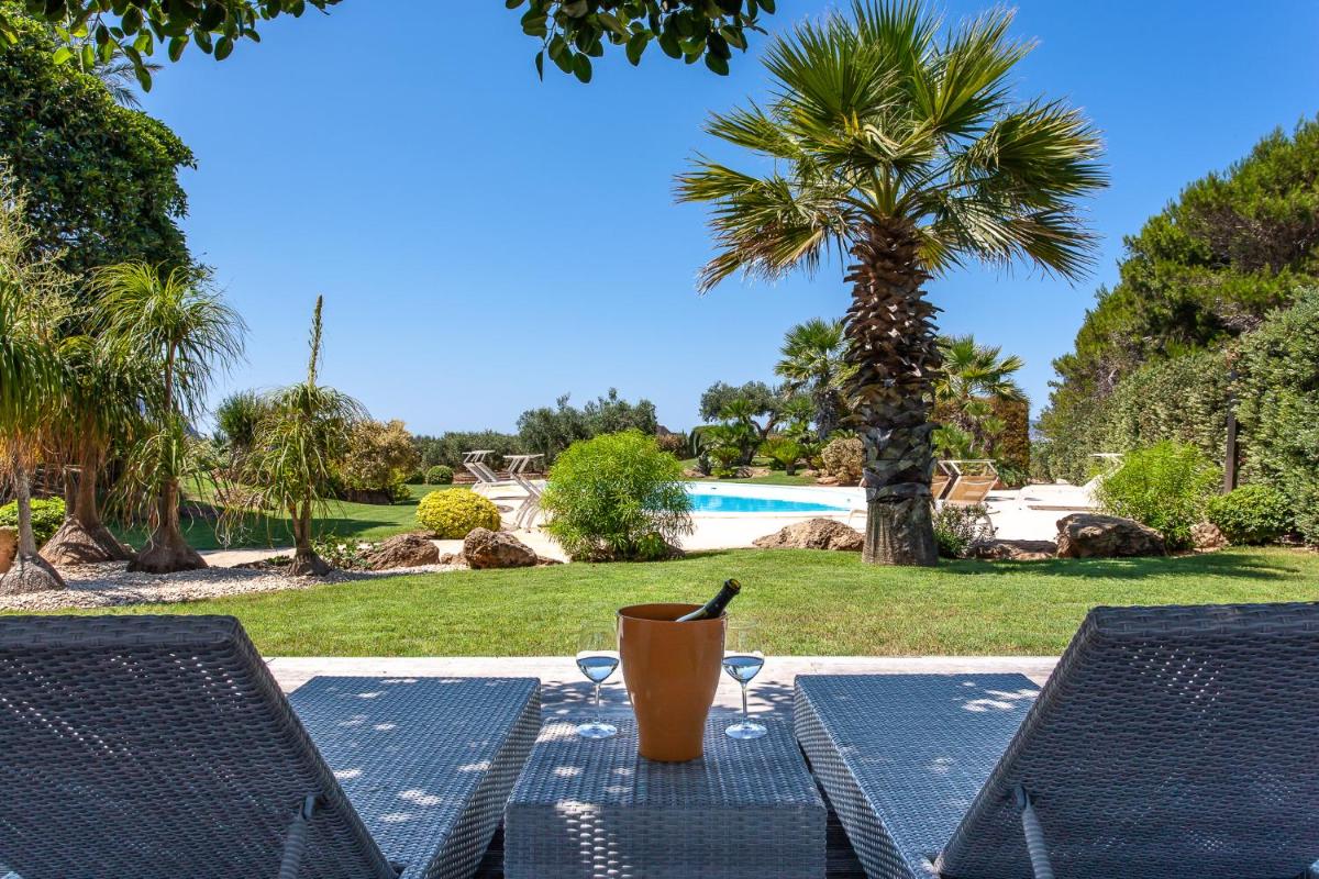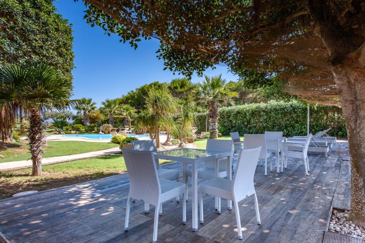 La piscina all’aperto è circondata da lettini e solarium, incorniciata dal verde del giardino, ed è ideale per rilassarsi dopo le escursioni sull’isola.