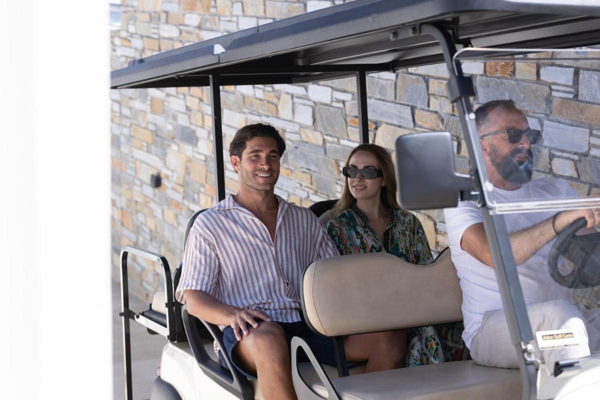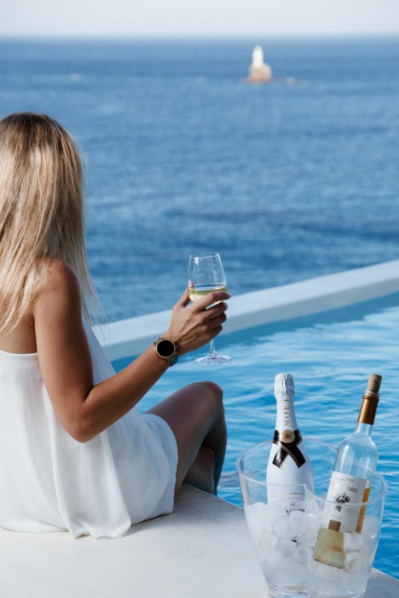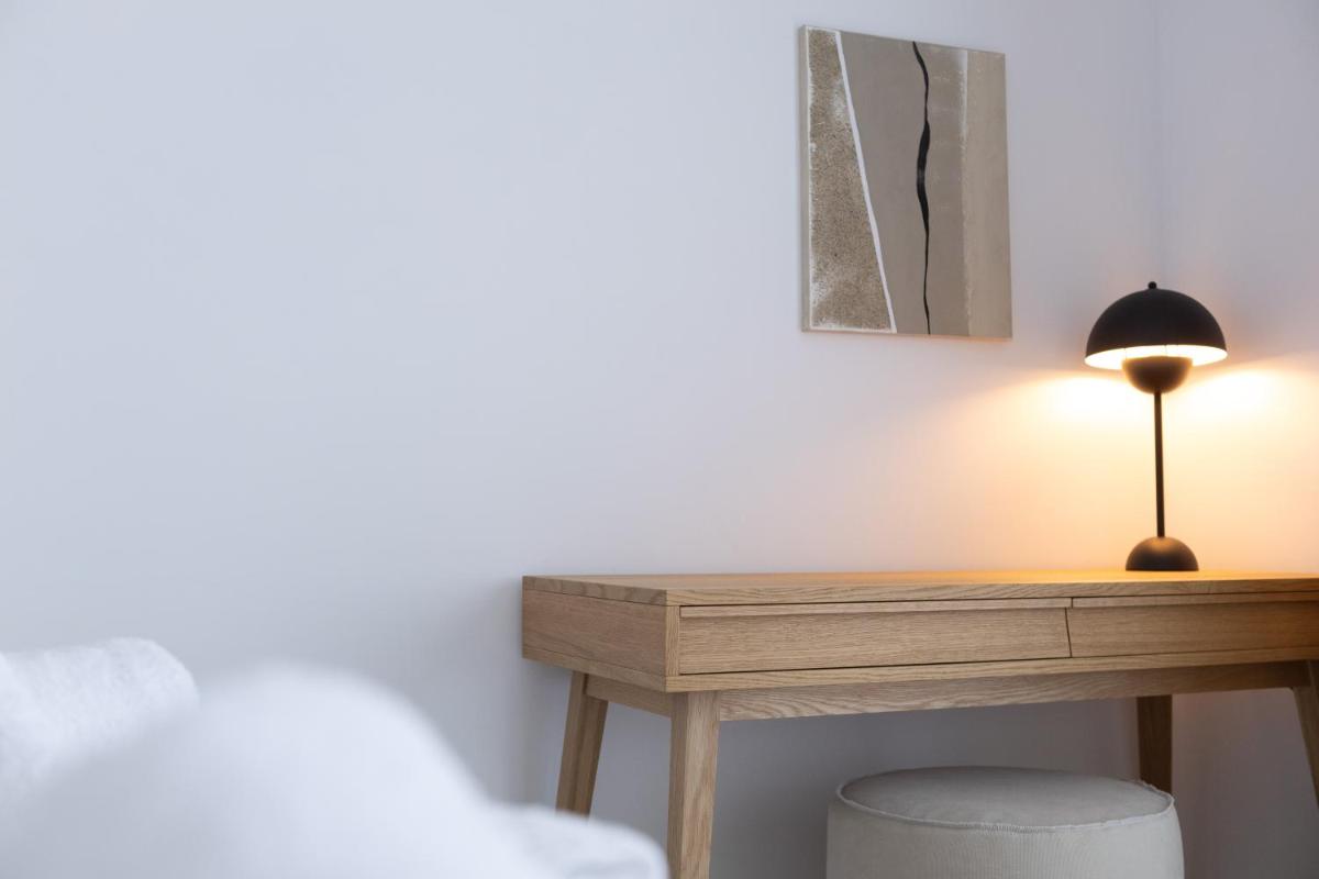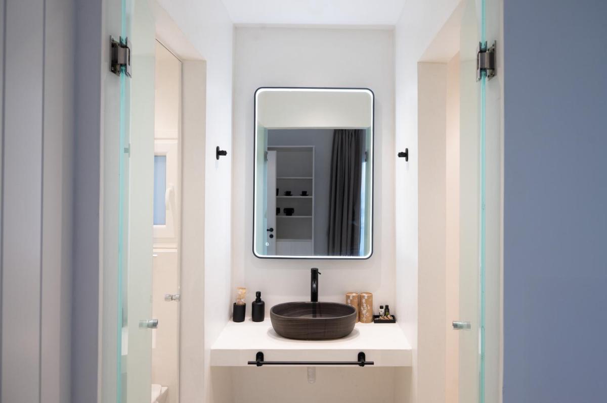Le suite, spaziose e con una o più camere da letto, sono arredate in uno stile moderno che richiama l'estetica cicladica, con un'enfasi sul comfort e sulla luce naturale. Ogni unità è dotata di un angolo cottura completamente attrezzato e un balcone privato per godersi il panorama marino in totale libertà e autonomia.