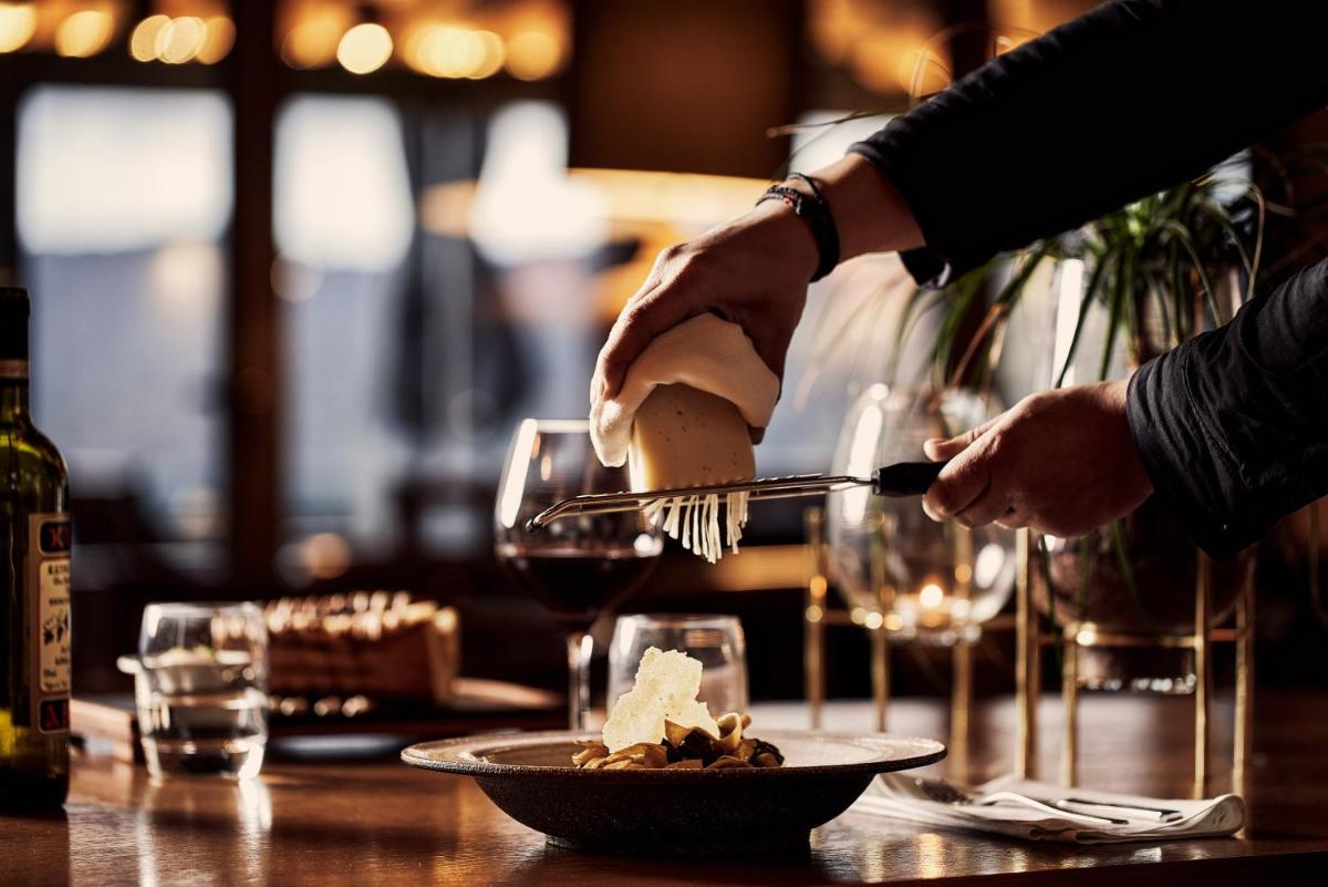 La cucina del ristorante si concentra sui sapori dell'Epiro e sui prodotti locali, con un'enfasi sui piatti a base di carne e formaggi tradizionali. L'hotel vanta anche una notevole cantina di vini, permettendo agli ospiti di scoprire le eccellenze enologiche della regione in un'atmosfera elegante.