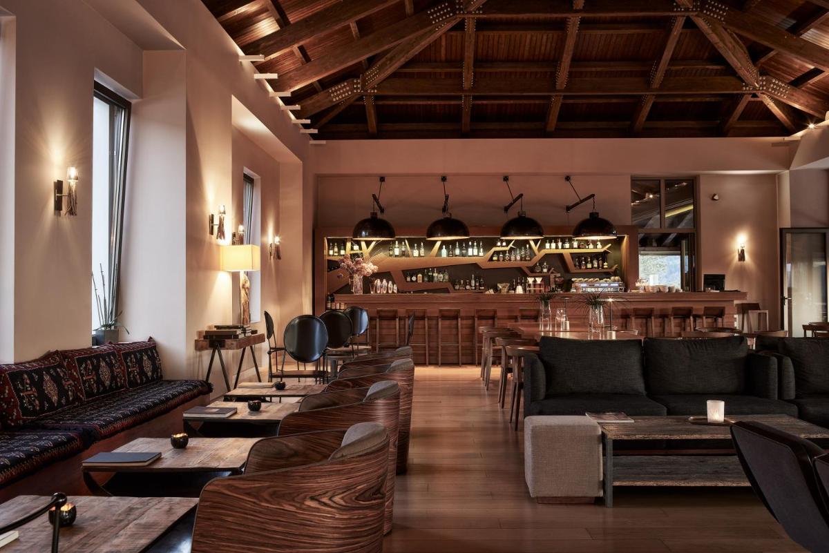 L'architettura del resort si integra perfettamente con il paesaggio montano circostante, richiamando lo stile tradizionale epirota. Gli interni sono dominati da caminetti accoglienti, soffitti in legno a vista e arredi lussuosi, creando un'atmosfera calda e raffinata, perfetta per un ritiro in montagna.