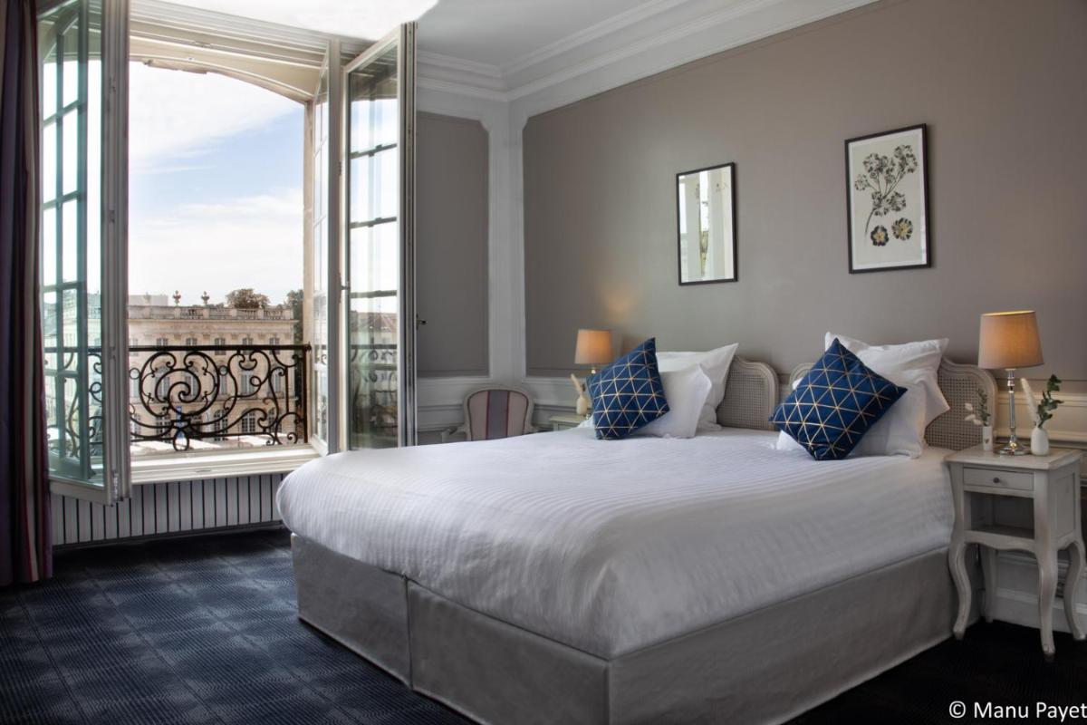 L'hotel vanta una posizione assolutamente ineguagliabile, offrendo una vista diretta e spettacolare sulla Place Stanislas e i suoi famosi cancelli dorati. Le camere con affaccio sulla piazza sono molto ambite per il loro panorama iconico.