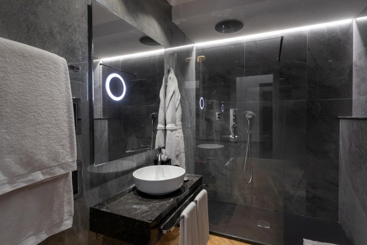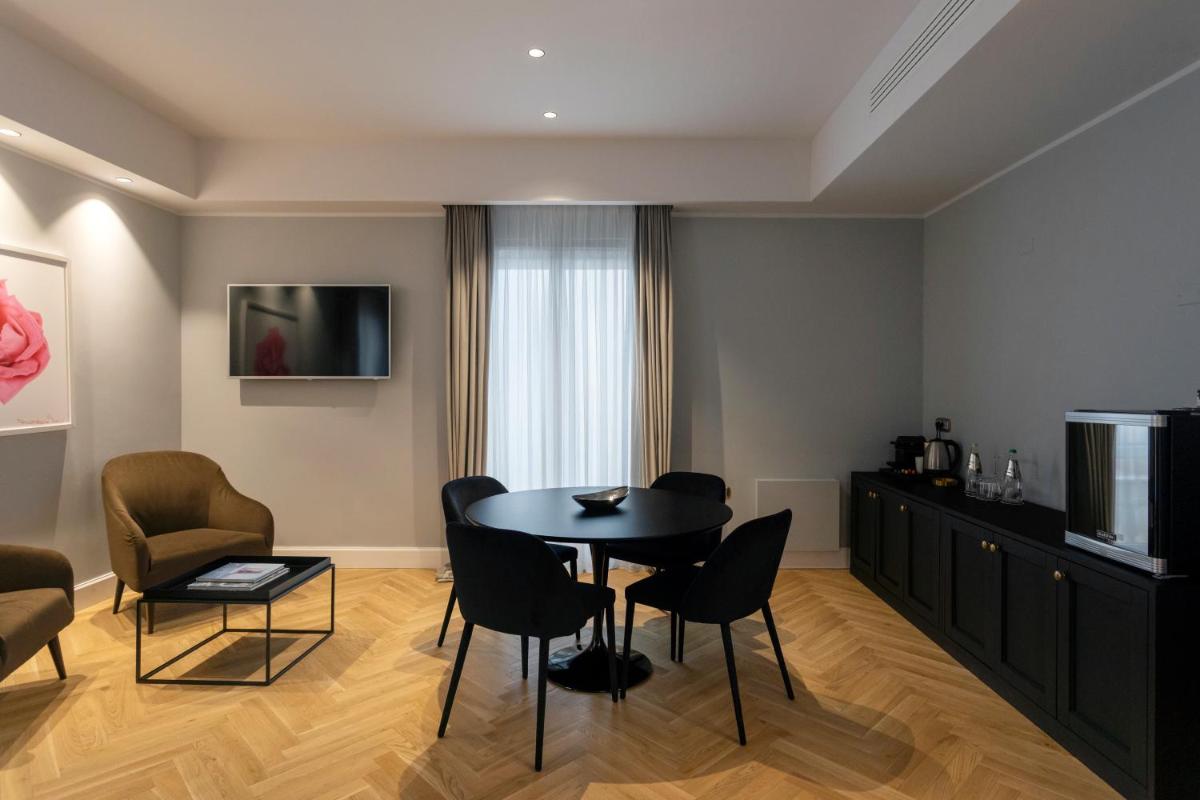 Ambientazioni eleganti con tessuti morbidi, dettagli artigianali e design discreto. Molte camere affacciano sui viali alberati del centro storico, regalando risvegli luminosi e serate in punta di stile.