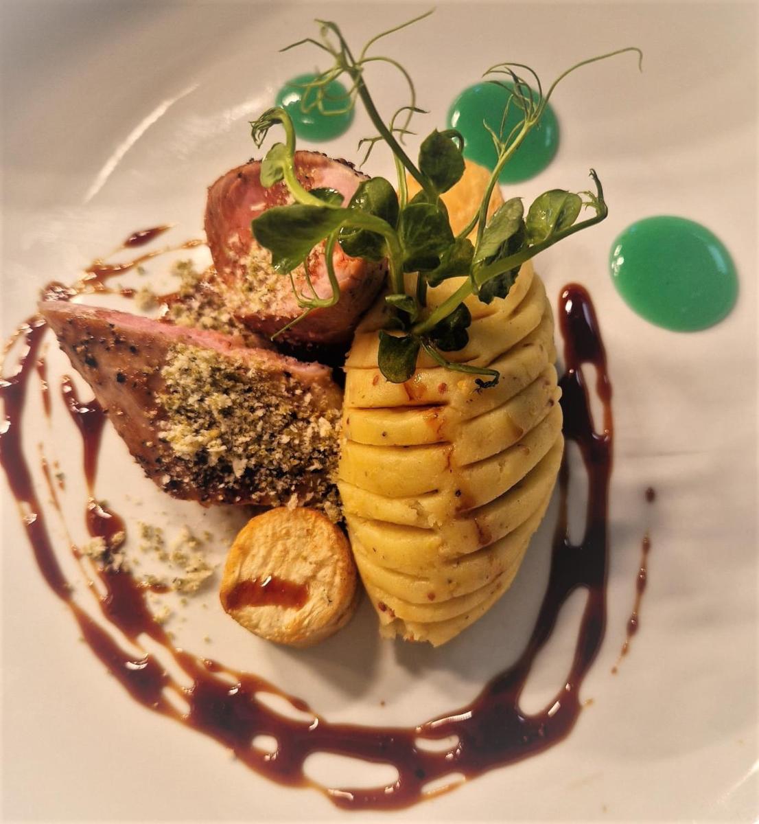 Il ristorante si concentra sui sapori dello Yorkshire, utilizzando prodotti freschi e locali per piatti che onorano la tradizione con un tocco moderno. Cenare nelle maestose sale del castello aggiunge un elemento di solennità ed eleganza all'esperienza culinaria.