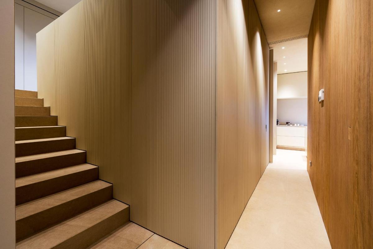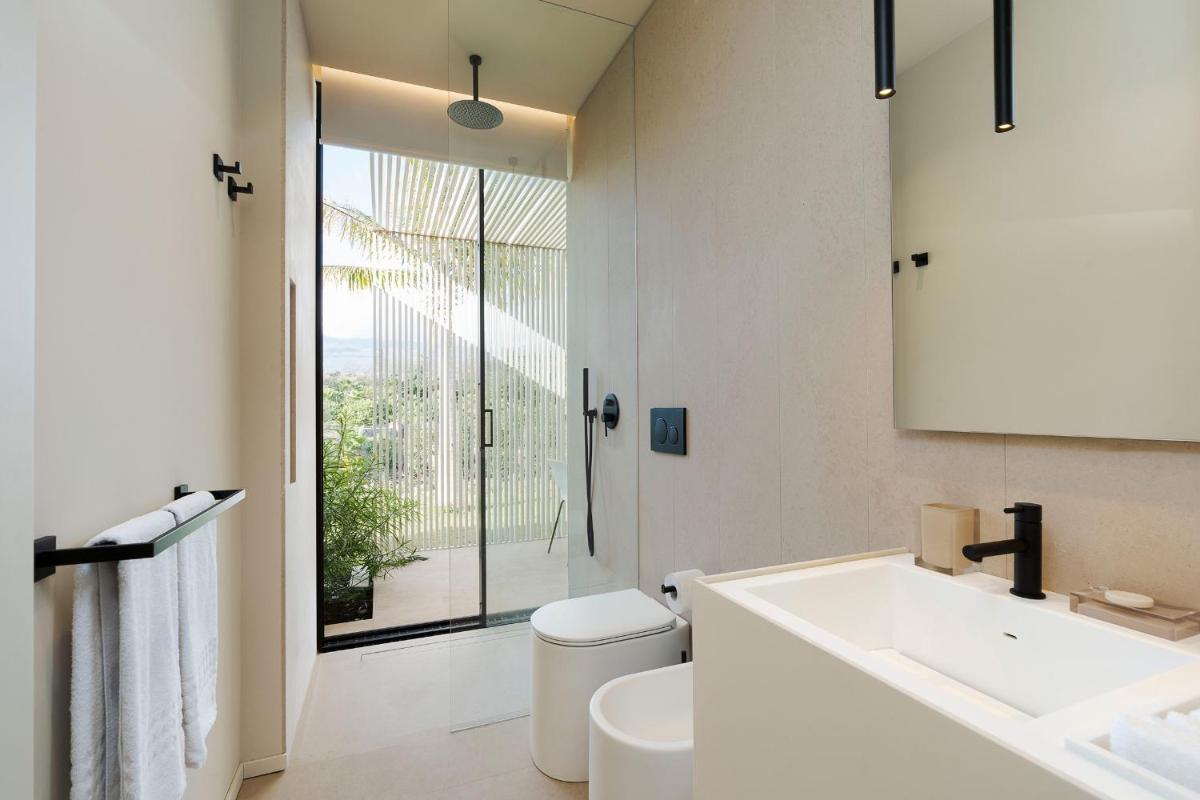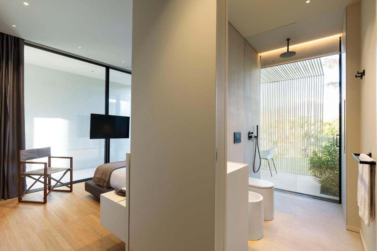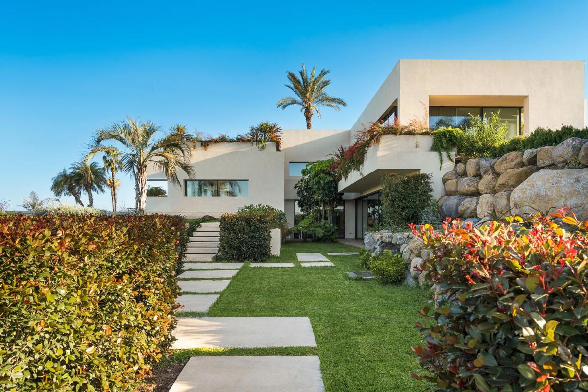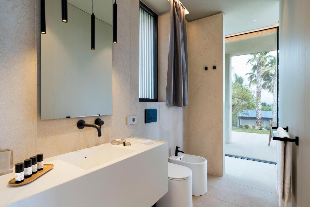 Distribuita su tre livelli, la villa ospita quattro ampie camere con bagno privato, arredi moderni, aria condizionata e ampie vetrate. Gli interni luminosi presentano linee contemporanee e materiali di pregio.