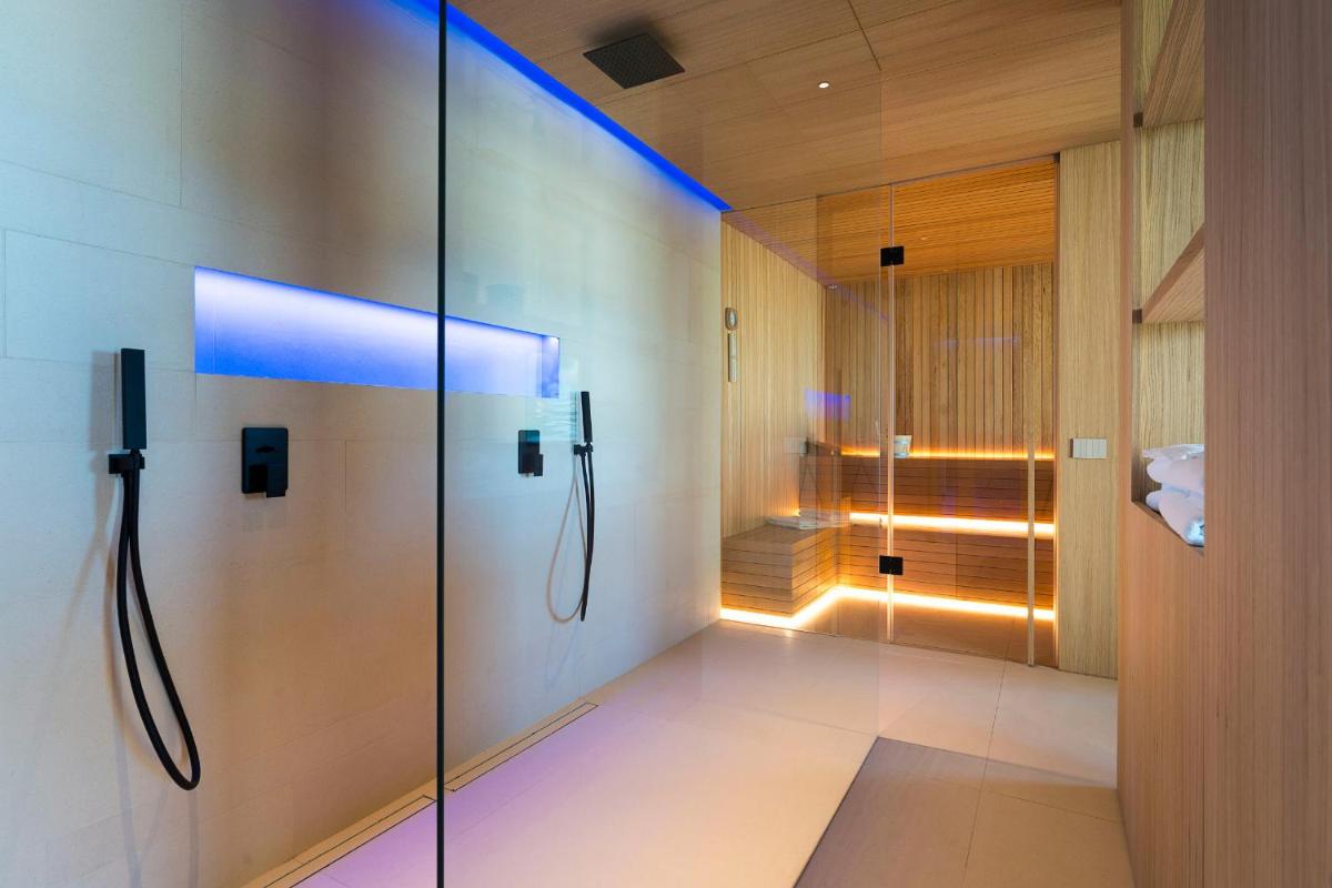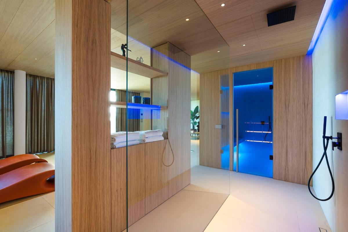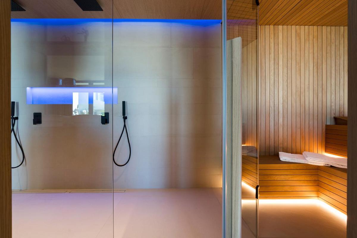 Il giardino ospita una splendida piscina a sfioro affacciata sul paesaggio, ideale per rilassarsi. Completa la proposta una spa interna con vasca idromassaggio, sauna e doccia sensoriale, per un’esperienza di benessere totale.