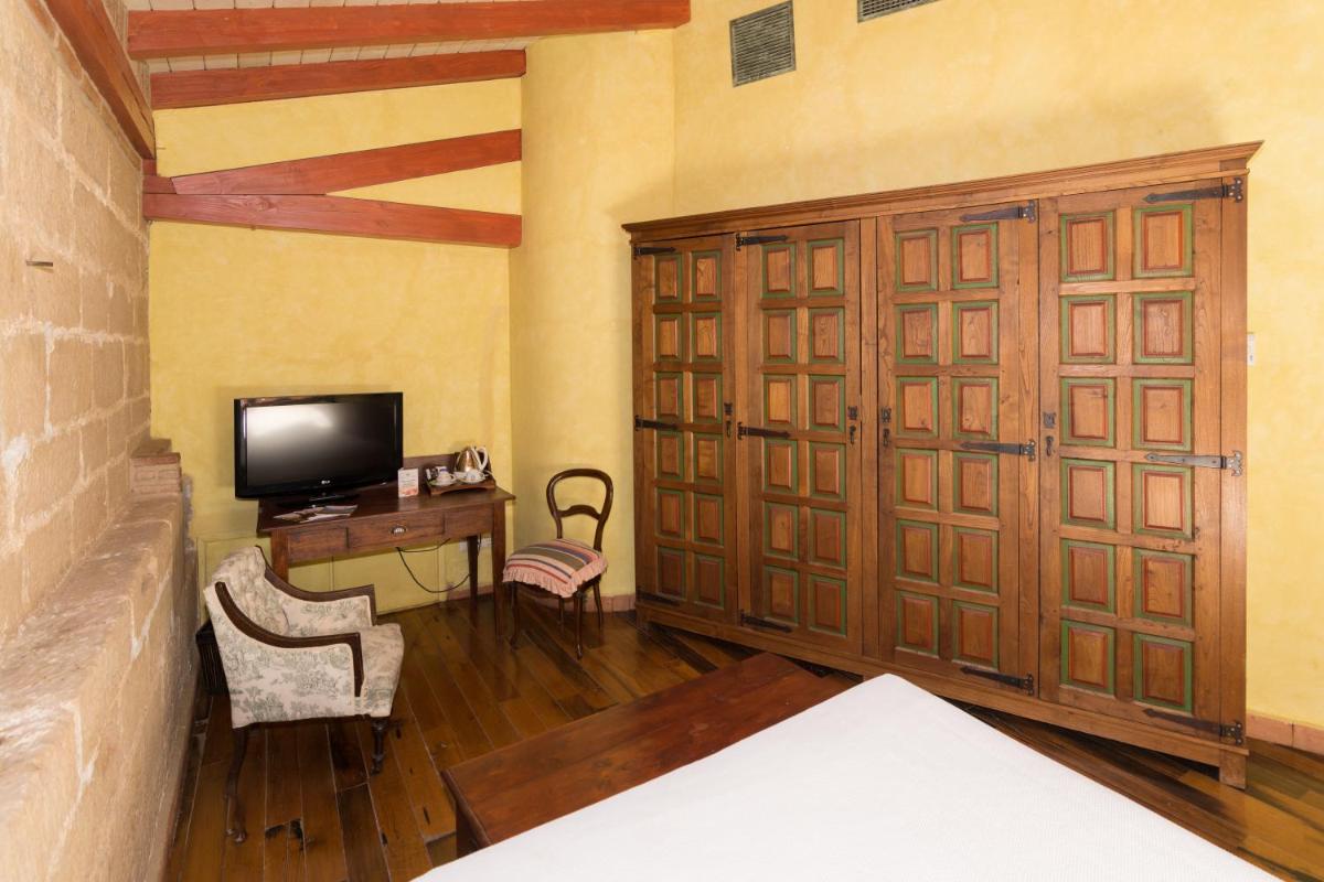 L'edificio, un ex convento, conserva una struttura imponente con muri in pietra, volte e un bellissimo chiostro centrale. Le camere sono decorate con uno stile classico ed elegante, con un'attenzione particolare al comfort e al mantenimento dell'atmosfera storica. Molte si affacciano sulla piazza storica o sul tranquillo giardino interno.