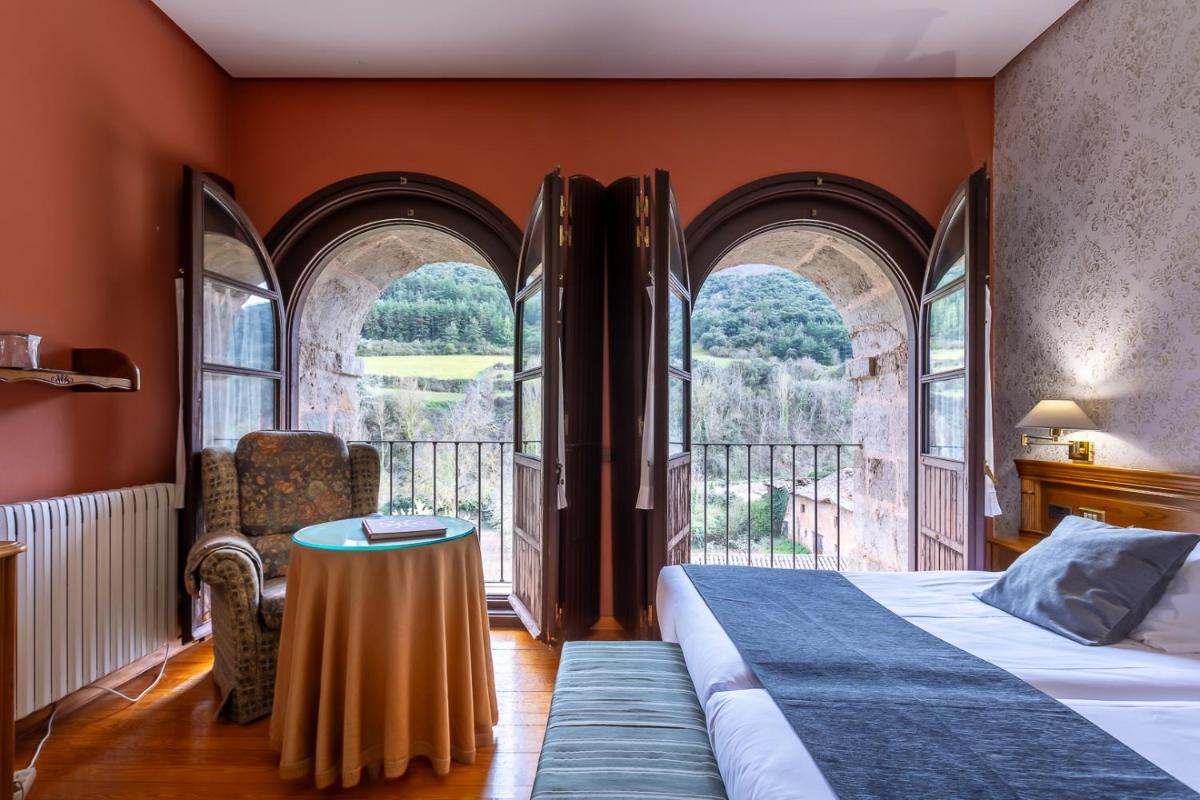 Le camere sono progettate per essere oasi di riposo, combinando il fascino rustico e monastico con il comfort moderno. Molte offrono splendide viste sulle montagne circostanti e sul paesaggio della Rioja Alta. Gli interni sono curati, con un design che rispetta la solennità del luogo, fornendo un ritiro sereno dopo una giornata di esplorazione culturale.
