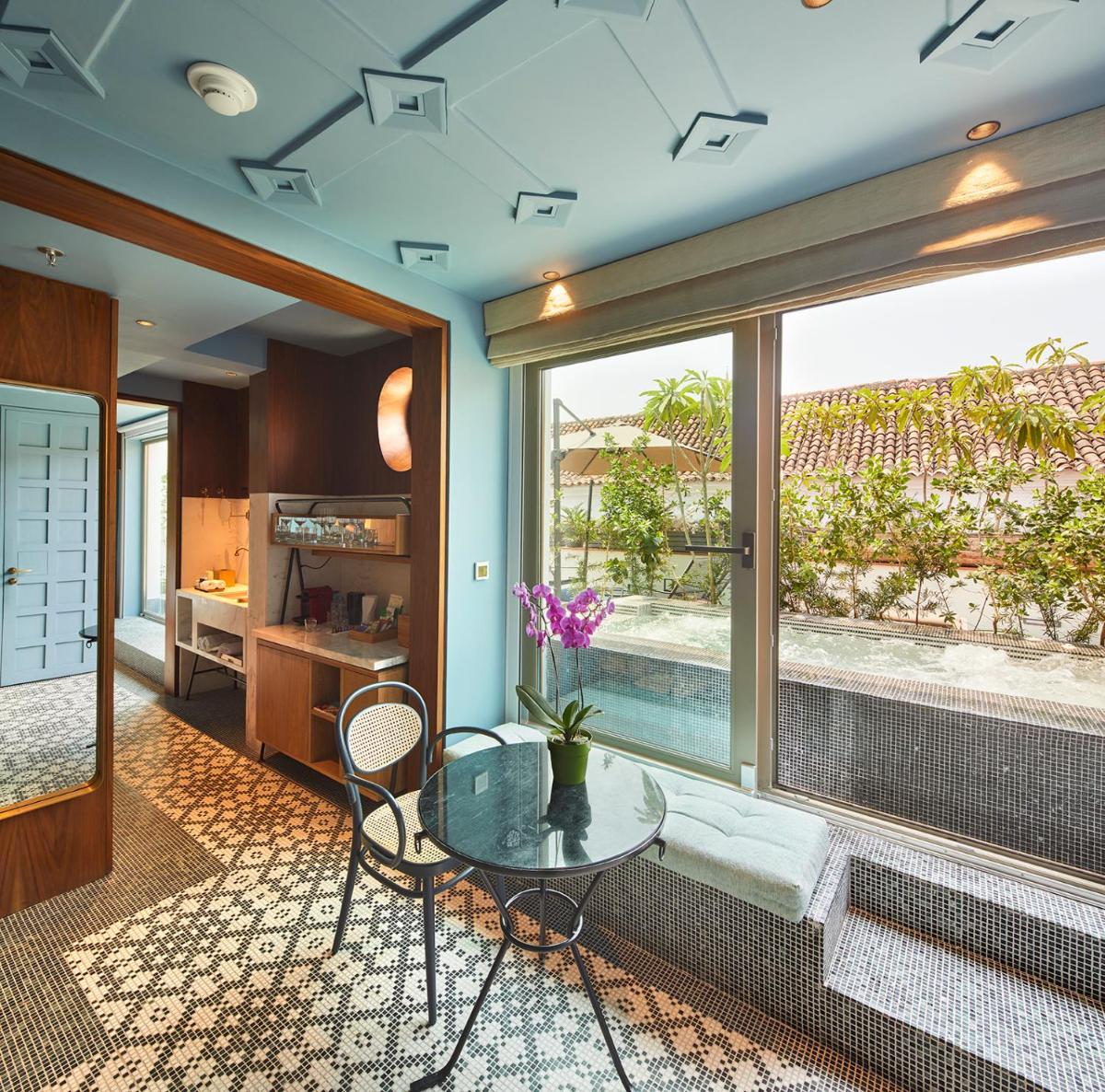 Il design interno è eclettico e di grande impatto visivo. Conserva gli elementi strutturali originali, come i patii interni e le grandi porte in legno, ma li arricchisce con opere d'arte moderna e arredi di design che donano agli spazi un carattere unico. Le camere sono spaziosi rifugi che combinano comfort e stile.