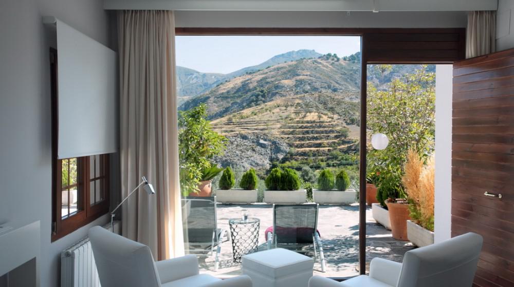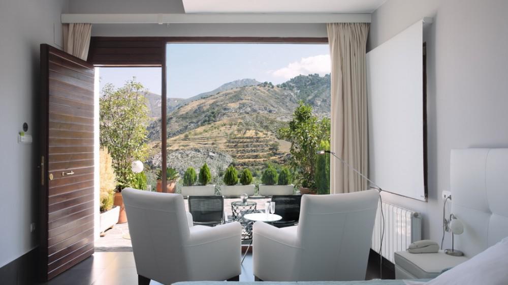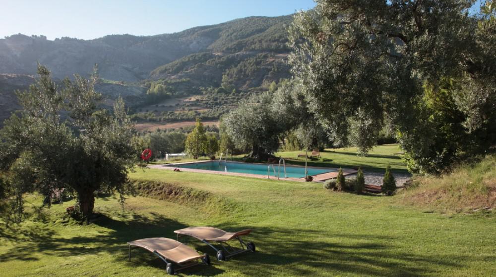 Circondato da ulivi e giardini mediterranei, l'hotel vanta una magnifica piscina a sfioro che si affaccia direttamente sul paesaggio naturale circostante. Le aree esterne sono progettate per il relax, con angoli appartati che permettono agli ospiti di godere del silenzio e della vista ineguagliabile sulla Sierra Nevada.