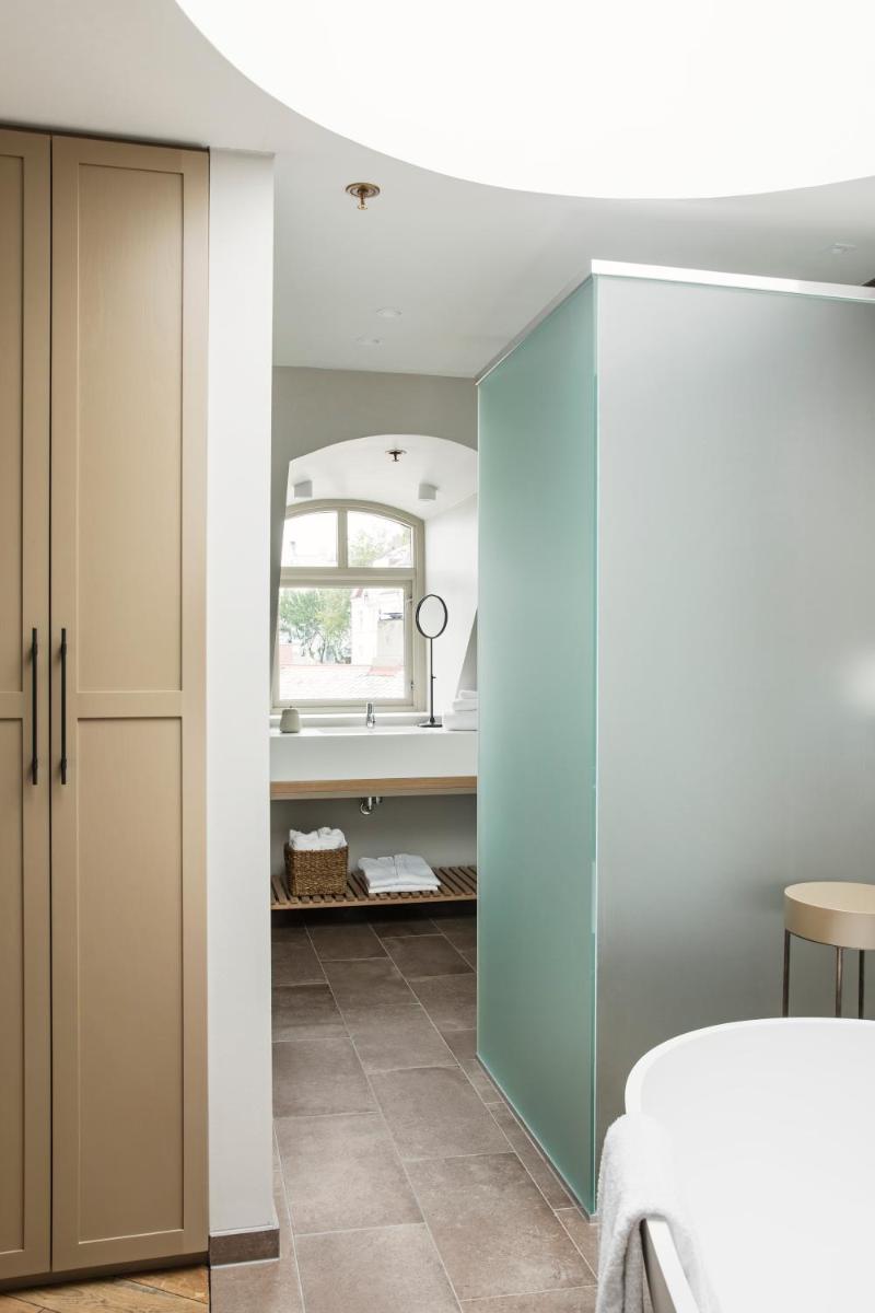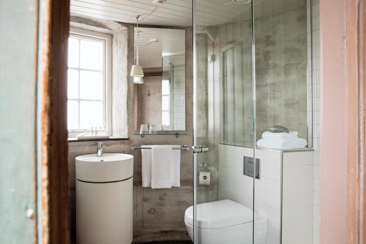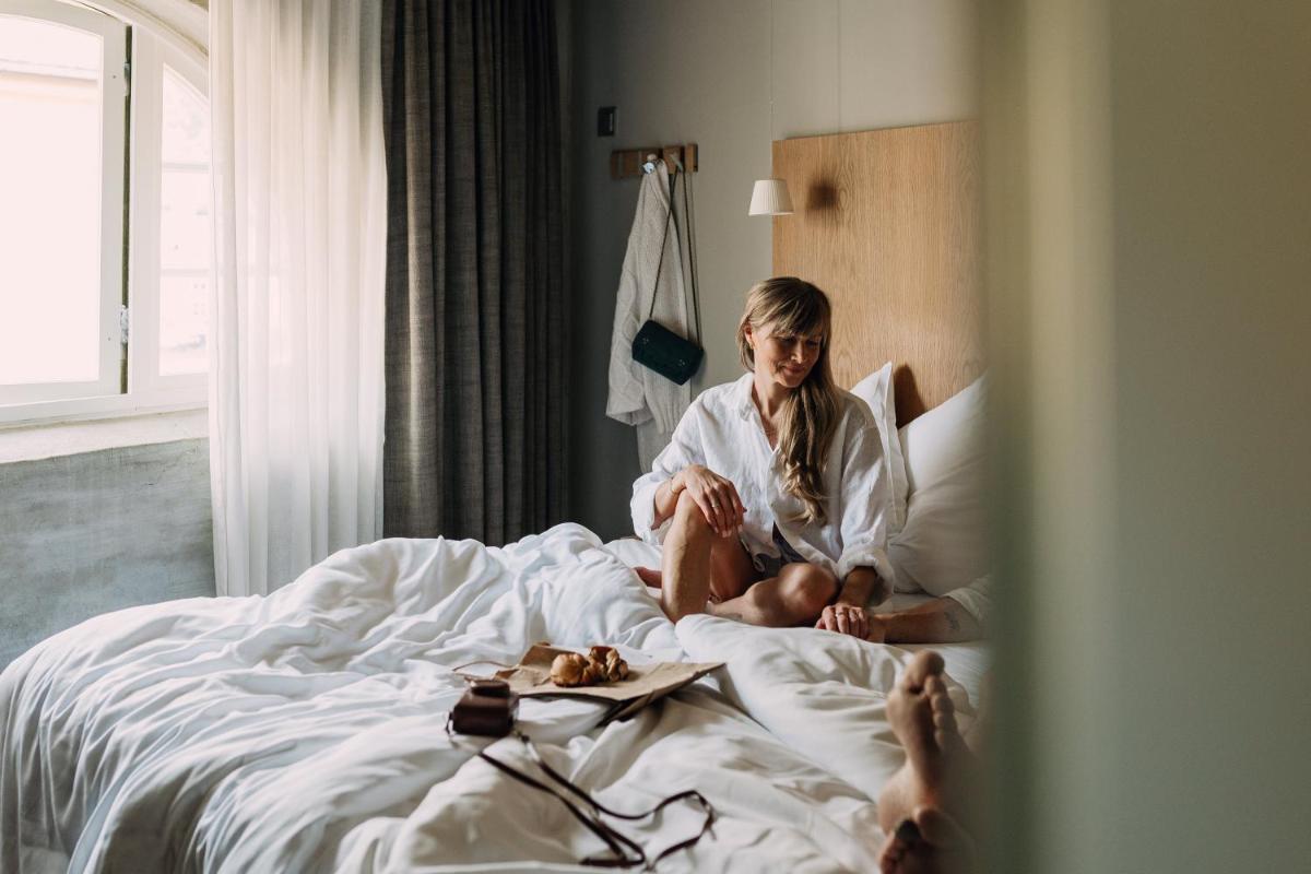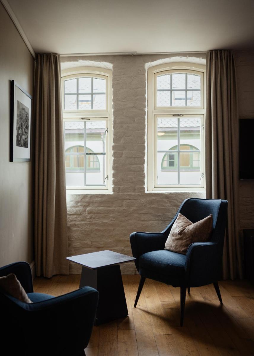 Ogni camera è unica e riflette il passato nautico dell'edificio, con travi in legno originali, pareti in mattoni a vista e grandi finestre che si affacciano sull'acqua. L'arredamento è in stile scandinavo, con attenzione ai materiali naturali e al comfort. La camera più celebre è situata in un faro autonomo, offrendo un'esperienza di lusso e isolamento senza pari.
