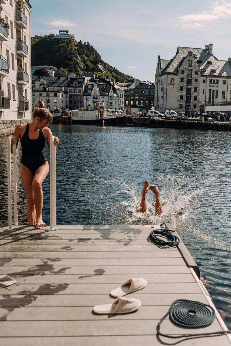 L'Hotel Brosundet è una gemma di design situata ad Ålesund, la città famosa per la sua architettura Art Nouveau e la posizione spettacolare sul fiordo. L'hotel è ospitato in un ex magazzino di stoccaggio del pesce, con alcune sezioni costruite direttamente sul mare, offrendo un'esperienza di soggiorno che fonde la storia marittima locale con un design minimalista scandinavo, intimo e moderno.
