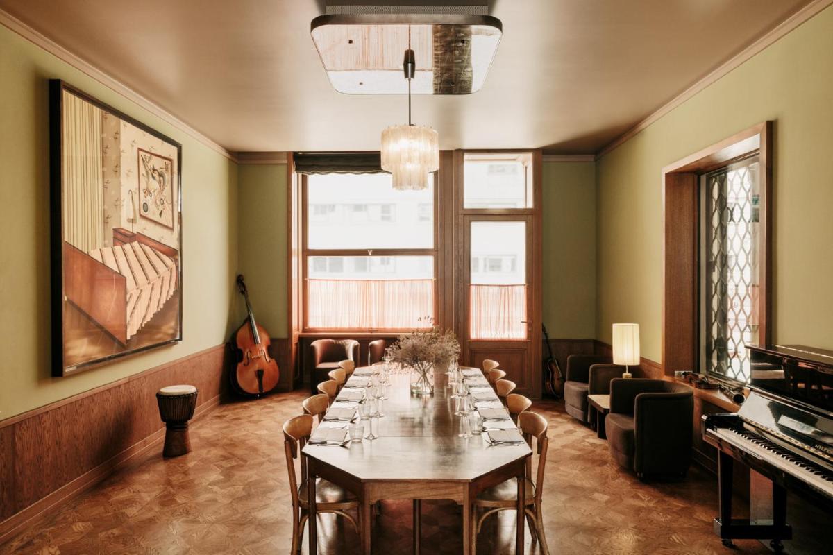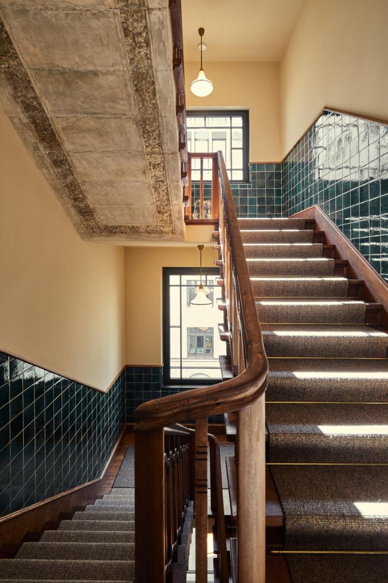 L'hotel include anche un'area benessere che si concentra sul relax e sulla rigenerazione, offrendo un contrasto piacevole con il trambusto cittadino. L'atrio e gli spazi comuni sono concepiti come luoghi di incontro e scambio, con ampie vetrate che inondano gli interni di luce naturale, enfatizzando la collezione d'arte esposta.