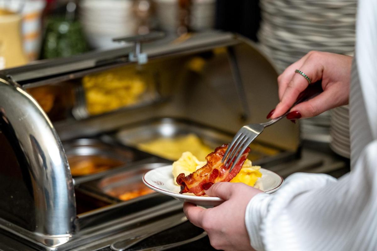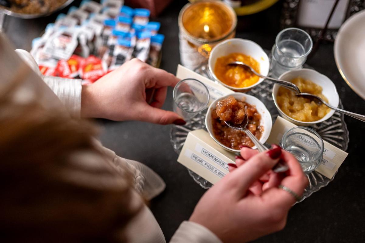 Gli interni sono arredati in uno stile classico ed opulento, con mobili d'epoca, affreschi, tappezzerie pregiate e un'impressionante scala in marmo. La Sala Colazione Reale, in particolare, celebra l'eredità storica dell'edificio, garantendo agli ospiti un risveglio in un ambiente di lusso tradizionale e storico.