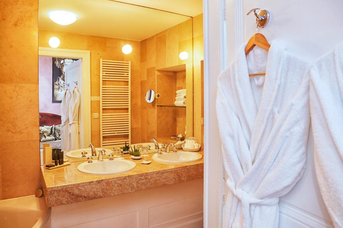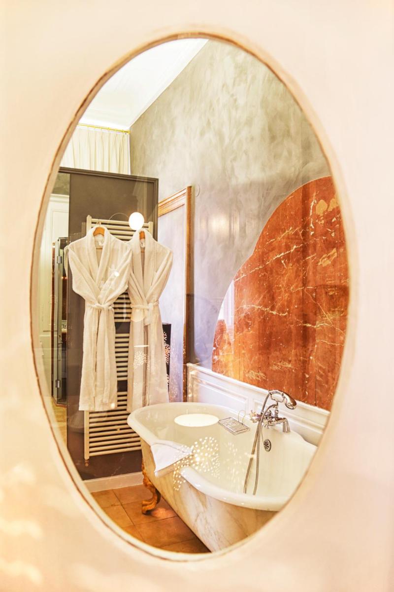 Ogni camera e suite è decorata individualmente con grande gusto, combinando mobili d'epoca con opere d'arte contemporanea. Offrono un rifugio di pace e intimità nel cuore della città, con bagni spaziosi e lussuosi.