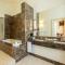 L’alloggio comprende un bagno in marmo con vasca idromassaggio e asciugacapelli. Potrete usufruire di pantofole, accappatoi e set di cortesia.
