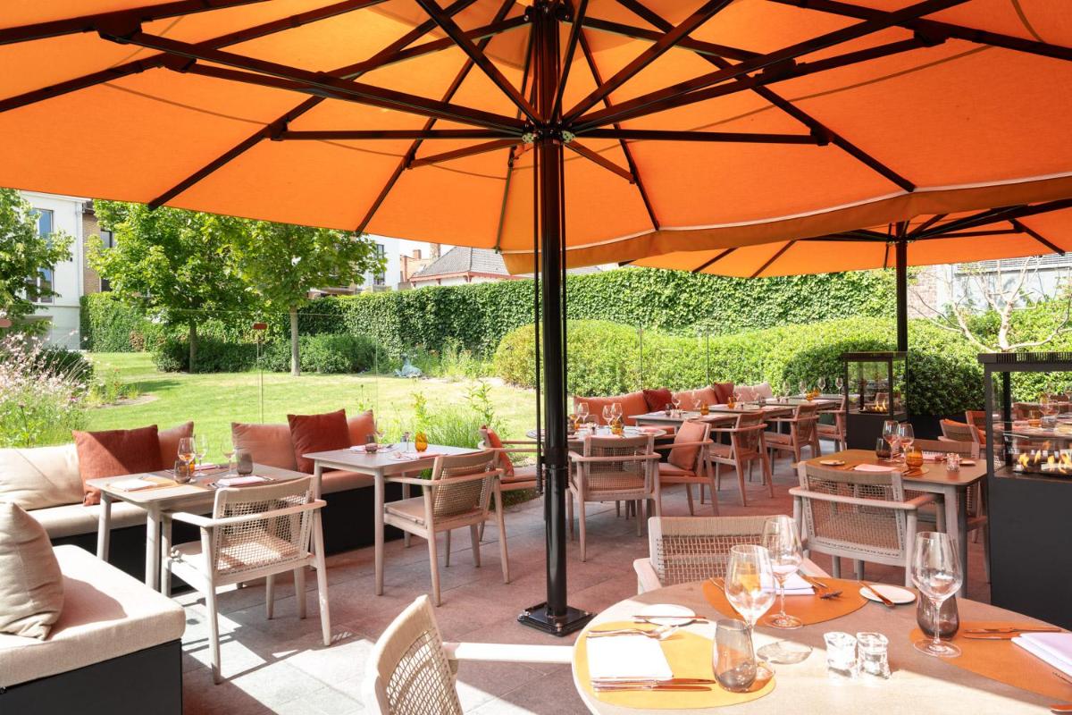 Il ristorante dell'hotel offre un'esperienza culinaria raffinata, con piatti belgi e internazionali preparati con cura. Il bar 'Atelier' è un luogo elegante e accogliente, perfetto per gustare una selezione di gin, birre locali o cocktail in un ambiente che riflette la storia e la classe del palazzo.