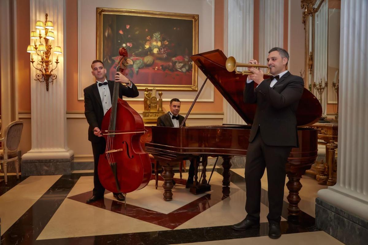Gli interni sono un capolavoro di design classico, con arredi d'antiquariato, affreschi originali e opere d'arte selezionate. Le camere e le suite sono state decorate con tessuti preziosi e mobili sontuosi, offrendo agli ospiti un'atmosfera regale e un comfort assoluto. Molte offrono viste dirette sul Parlamento, l'Acropoli o il Giardino Nazionale.