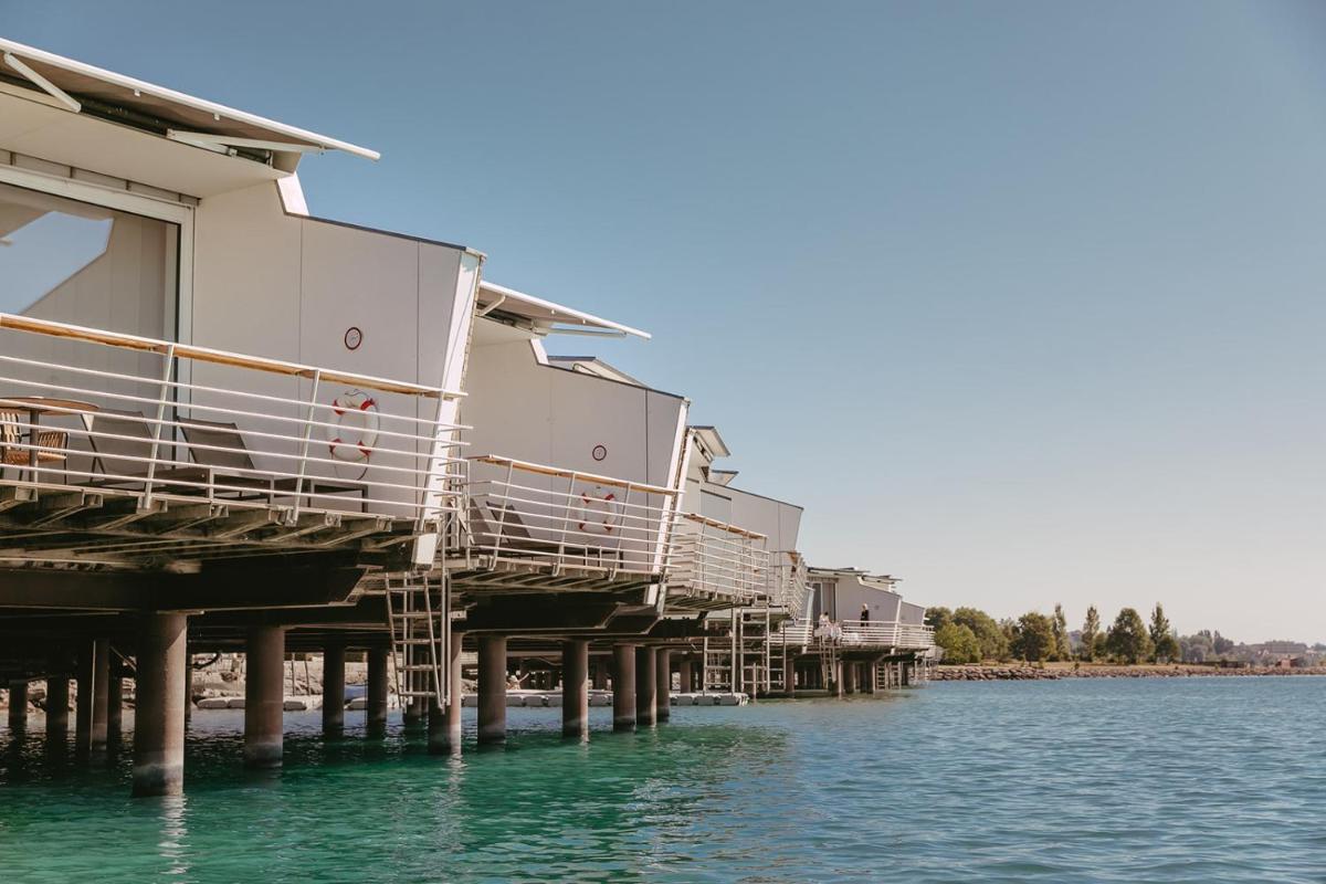 L'Hotel Palafitte è una struttura unica e straordinaria in Europa, l'unico hotel costruito interamente su palafitte sul Lago di Neuchâtel. Progettato per l'Expo 2002, offre un'esperienza di soggiorno in bungalow privati sull'acqua, combinando un design architettonico moderno e minimalista con un ambiente di lusso e totale privacy.