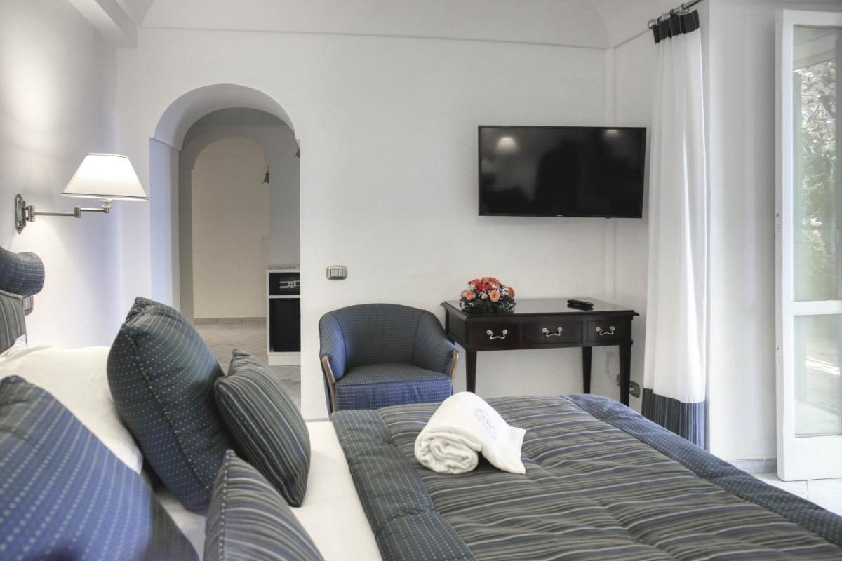 Le camere e le suite sono state restaurate con cura meticolosa per preservare elementi d’epoca come soffitti a volta, pavimenti in maiolica originale e affreschi. Ogni sistemazione è arredata individualmente, fondendo l’eleganza classica con un design contemporaneo e minimalista. Molte camere dispongono di balconi o terrazze private che si affacciano sulla vista panoramica, garantendo un’atmosfera di assoluta esclusività.