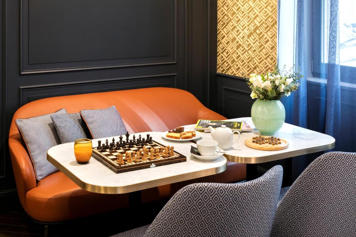 Gli interni sono ispirati all'eleganza del XIX secolo, con materiali nobili come velluto e legno scuro. Le camere e le suite sono spaziose e luminose, arredate in uno stile che celebra il savoir-faire francese. Ogni dettaglio contribuisce a creare un'atmosfera intima e accogliente.