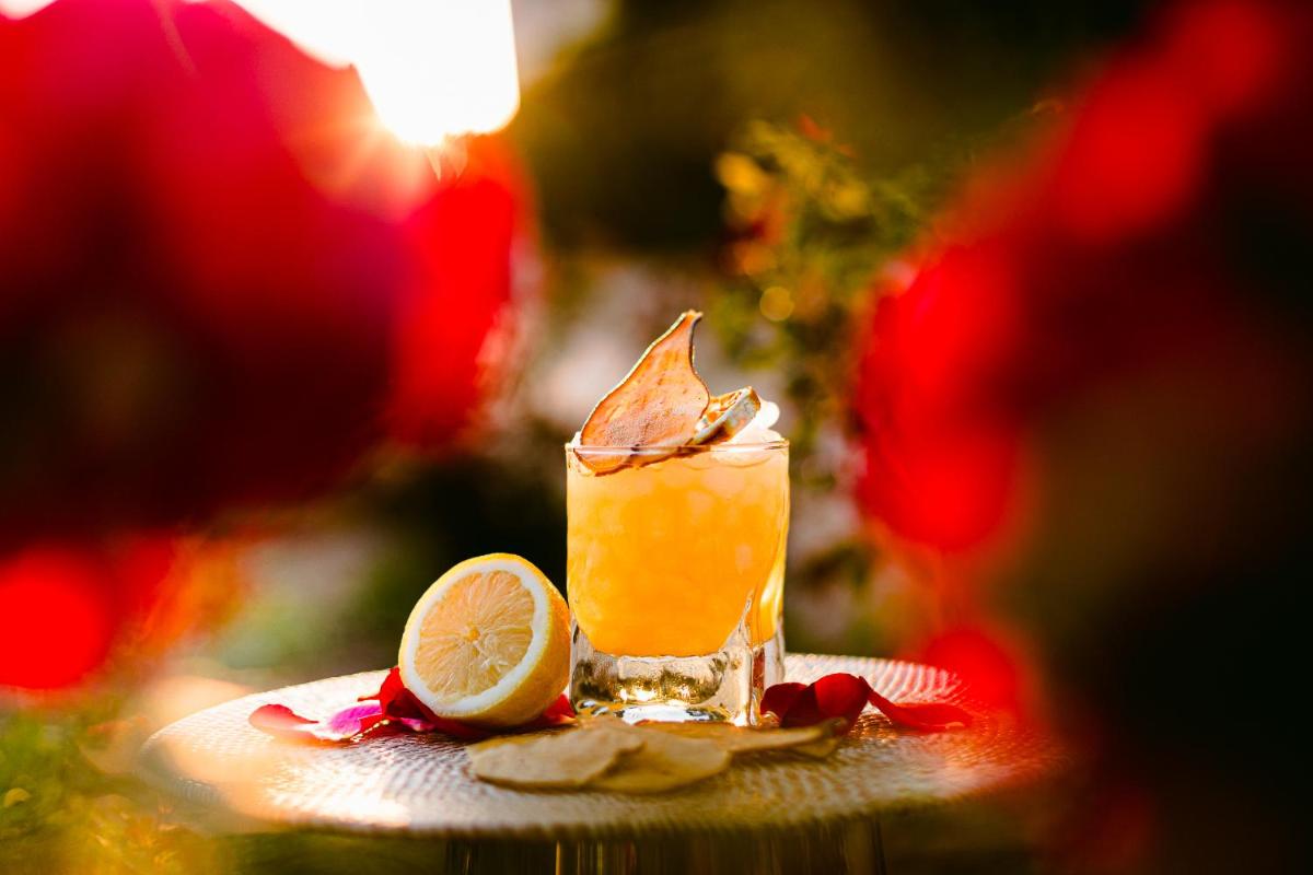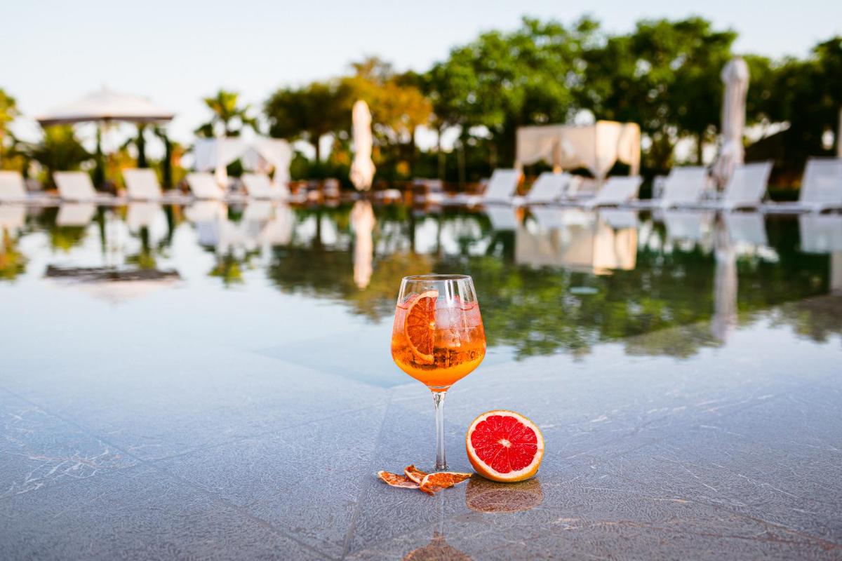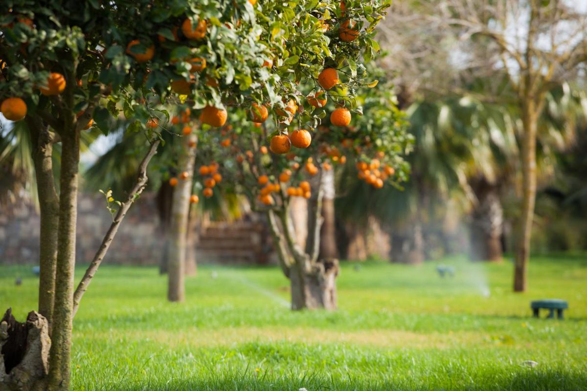 La piscina esterna è immersa in un contesto idilliaco, circondata da agrumeti e ampi prati verdi, che creano un'atmosfera di pace assoluta. L'hotel dispone anche di una piccola ma curata spa con trattamenti benessere, offrendo agli ospiti l'opportunità di rilassarsi completamente. Gli spazi esterni, in particolare i giardini profumati, sono ideali per la meditazione e lo yoga.