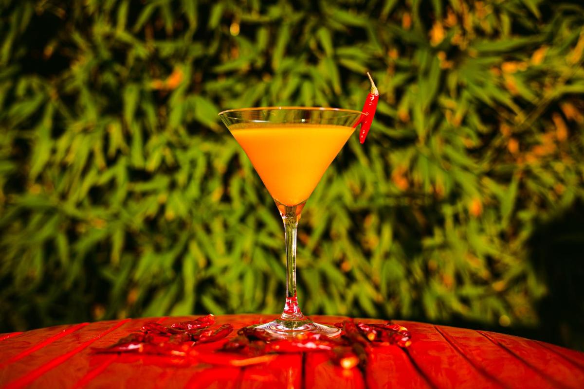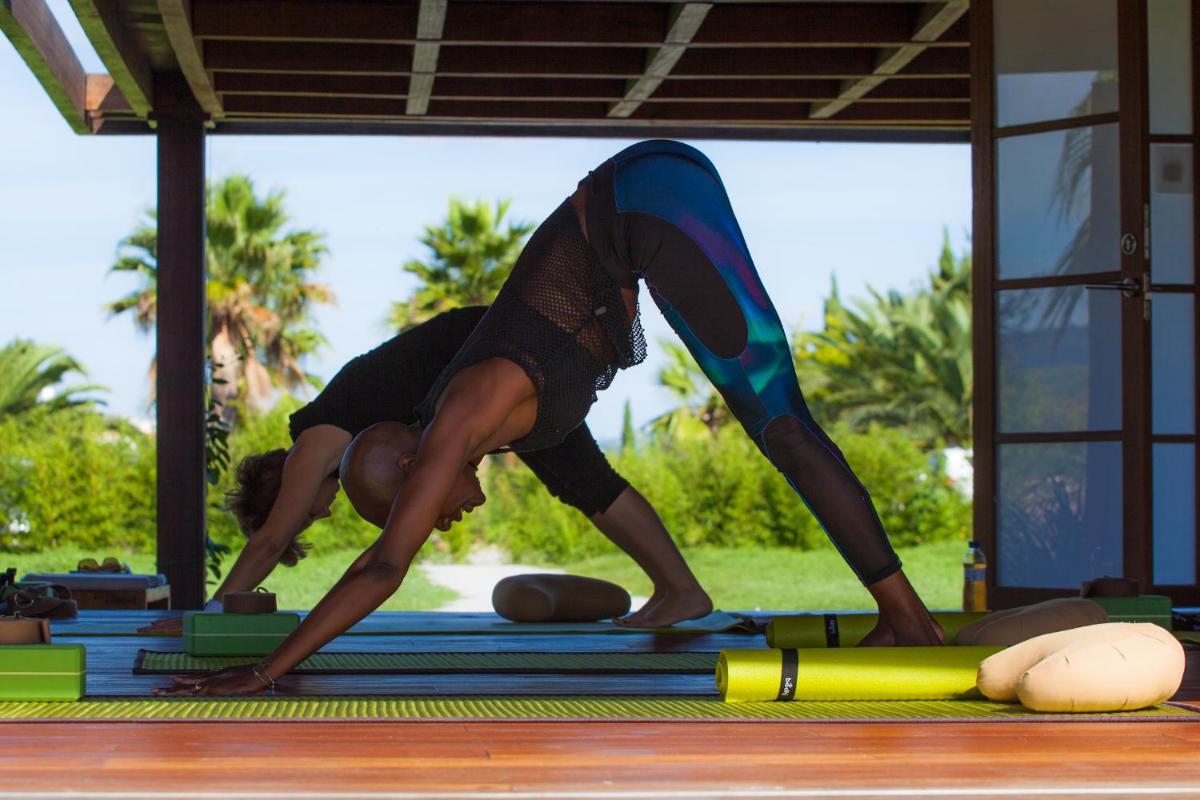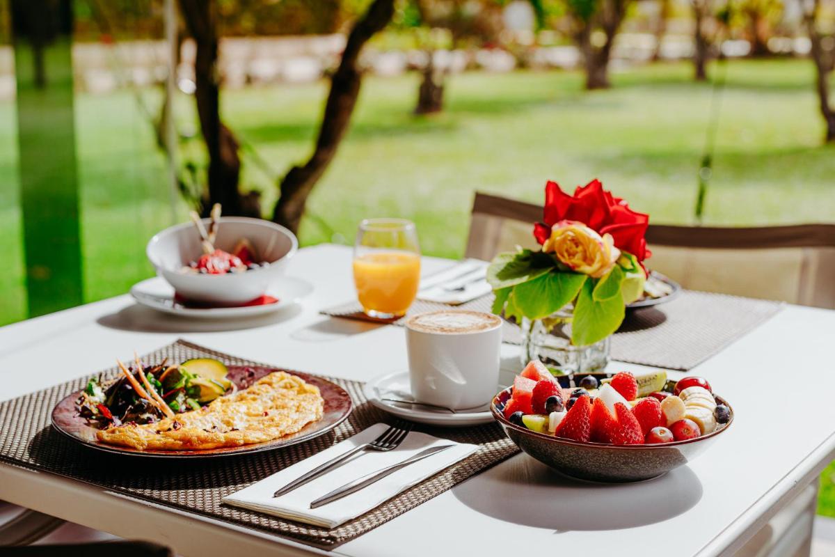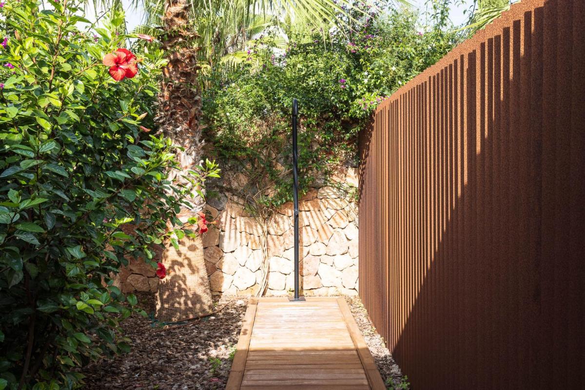 La piscina esterna è immersa in un contesto idilliaco, circondata da agrumeti e ampi prati verdi, che creano un'atmosfera di pace assoluta. L'hotel dispone anche di una piccola ma curata spa con trattamenti benessere, offrendo agli ospiti l'opportunità di rilassarsi completamente. Gli spazi esterni, in particolare i giardini profumati, sono ideali per la meditazione e lo yoga.