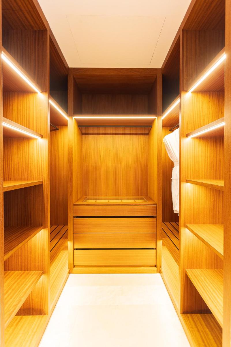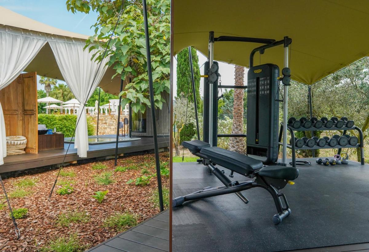 Le sistemazioni sono caratterizzate da un mix armonioso di elementi rustici (travi in legno a vista, pareti in pietra) e arredi di design contemporaneo. Ogni camera o suite offre uno spazio unico, molte con terrazze private che si affacciano sui frutteti, sui giardini o sul campo da polo adiacente. La cura per i dettagli e i materiali di pregio assicurano un comfort eccezionale.