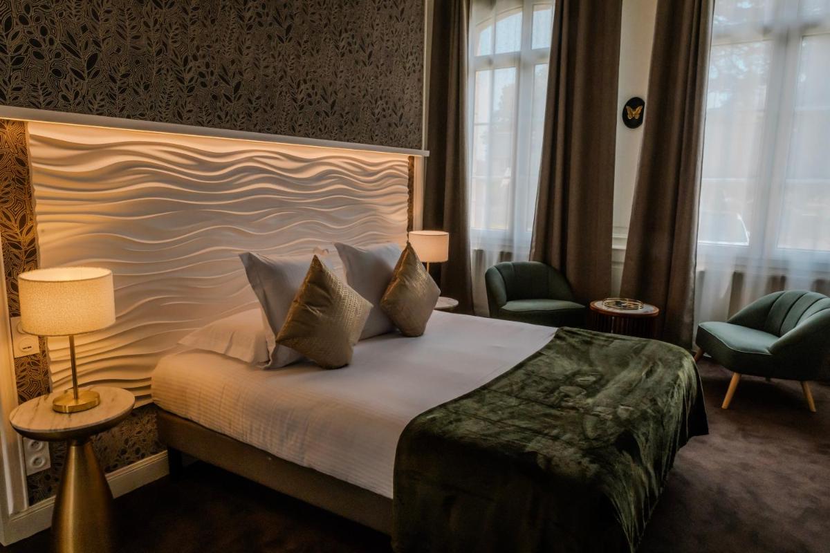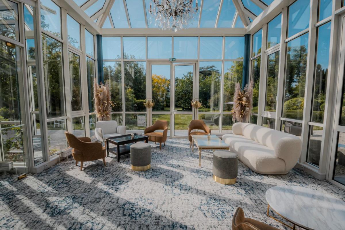Le camere e le suite sono arredate con gusto, spesso richiamando uno stile classico che si addice all'ambiente storico, ma con tutte le comodità contemporanee. La cura per i dettagli nell'arredo e nei servizi garantisce un'esperienza di soggiorno raffinata e confortevole, permettendo agli ospiti di sentirsi immersi nell'eleganza discreta della Normandia.