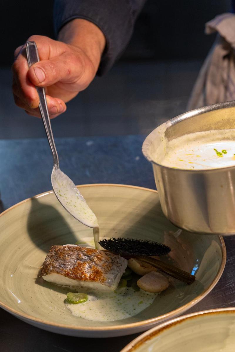 Il ristorante o gli spazi di ristorazione si concentrano probabilmente sulla celebrazione della ricca gastronomia normanna, con piatti preparati con prodotti freschi del terroir. Il clima accogliente e il servizio attento completano l'offerta, permettendo agli ospiti di assaporare i sapori autentici della regione in un ambiente elegante.