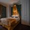 Gli interni sono stati curati con estrema attenzione per ricreare l'eleganza dell'epoca delle Luci, con mobili in stile Luigi XV e Luigi XVI, tessuti damascati, e letti a baldacchino. Ogni dettaglio, dalle modanature dorate alle opere d'arte, contribuisce a creare un'atmosfera di lusso storico e sofisticato charme.