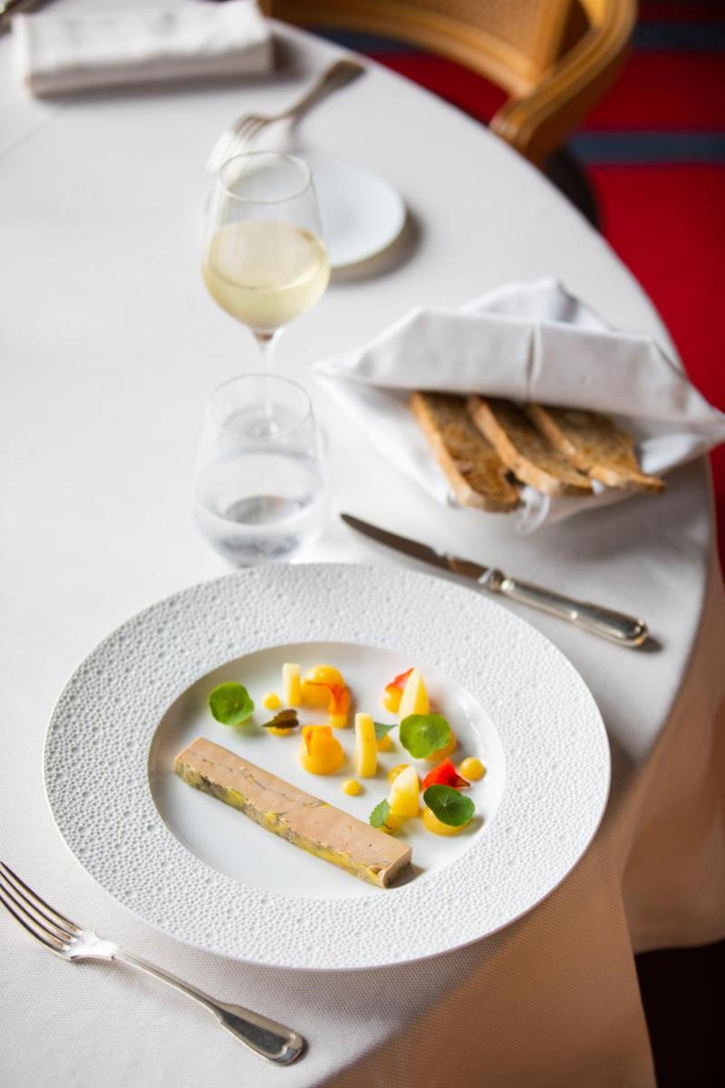 Il ristorante gastronomico propone una cucina raffinata che celebra i prodotti freschi e i sapori della Bretagna. I piatti sono creativi e preparati con cura, serviti in un ambiente elegante con vista sul dominio. L'esperienza culinaria è un'esplorazione dei sapori locali, accompagnata da una selezione di vini all'altezza della reputazione dell'hotel.