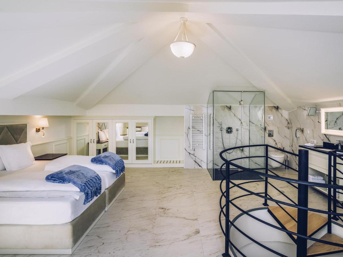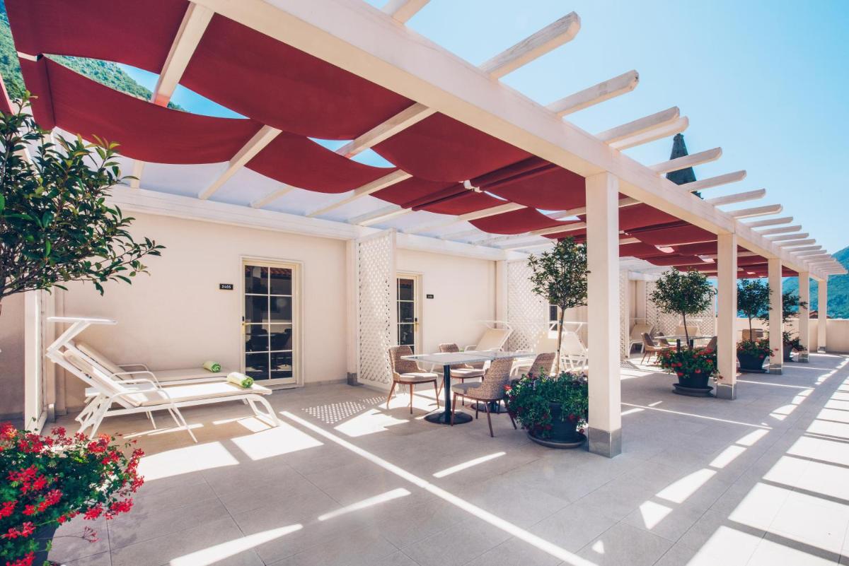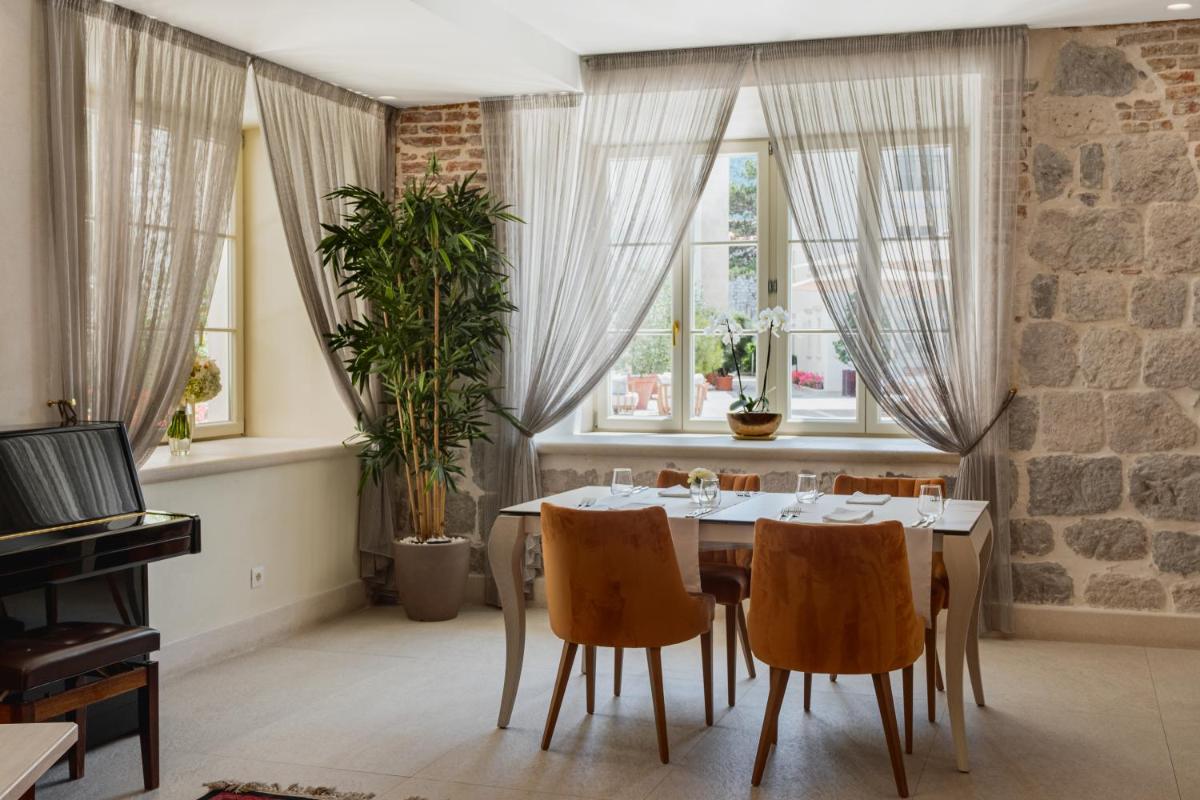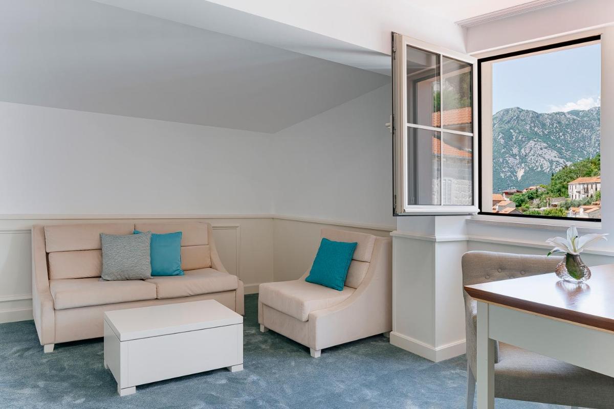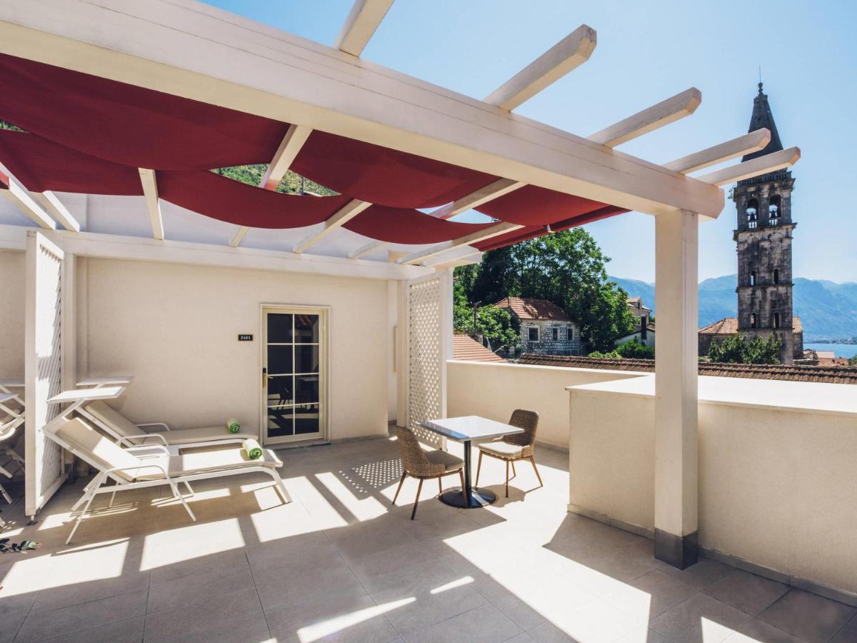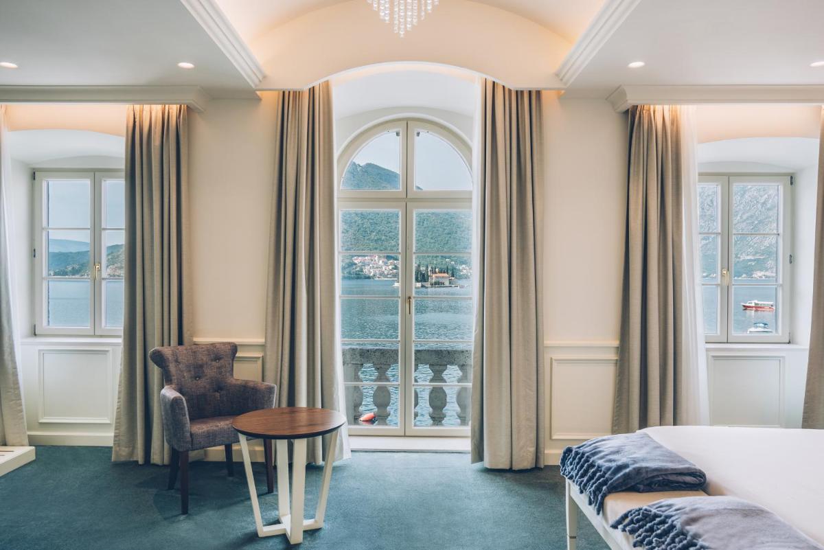 L'hotel è stato sapientemente restaurato, conservando gli elementi architettonici originali come la pietra scolpita e le maestose volte. Le camere e le suite sono decorate in uno stile che unisce il lusso veneziano del passato con il comfort moderno. Molte offrono balconi sul mare o affacci sulle pittoresche strade acciottolate di Perast.