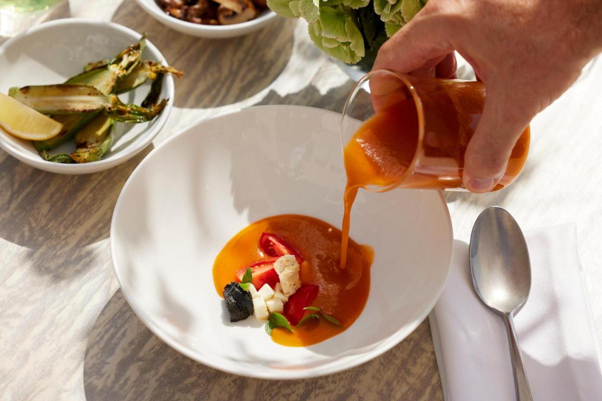 Il concetto Infinite Lifestyle include l'accesso illimitato a 5 ristoranti à la carte. Le cucine spaziano dalla greca moderna all'asiatica (Fresco) e alla francese (Provence), con menu ideati da chef stellati Michelin. La qualità degli ingredienti è eccellente e il servizio è di altissimo livello. L'opzione 'Dine Out' estende il pranzo o la cena a ristoranti locali selezionati fuori dal resort.