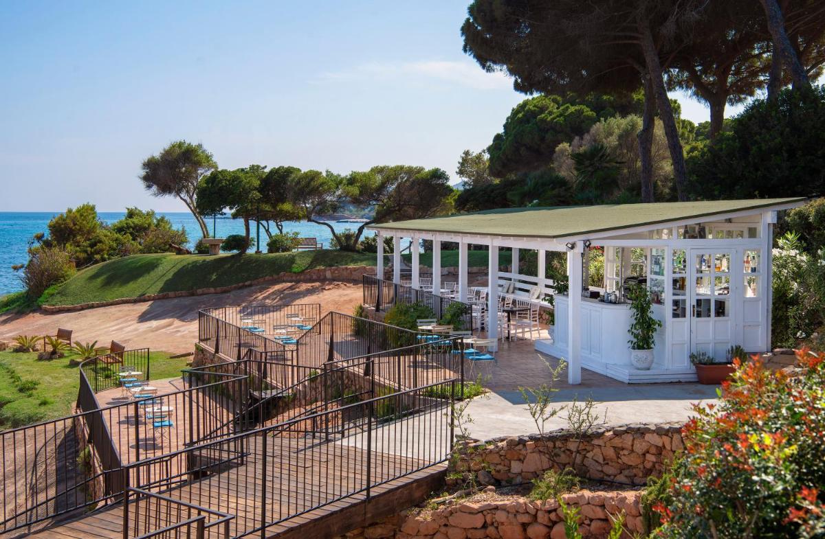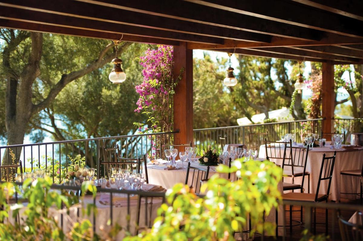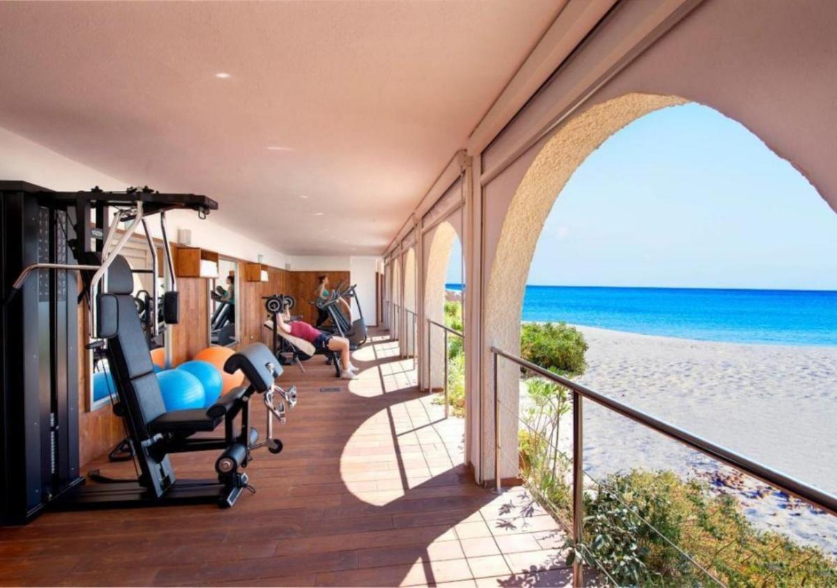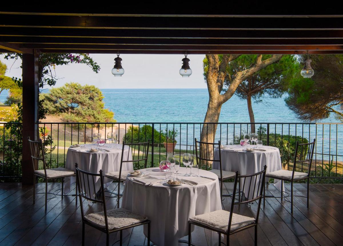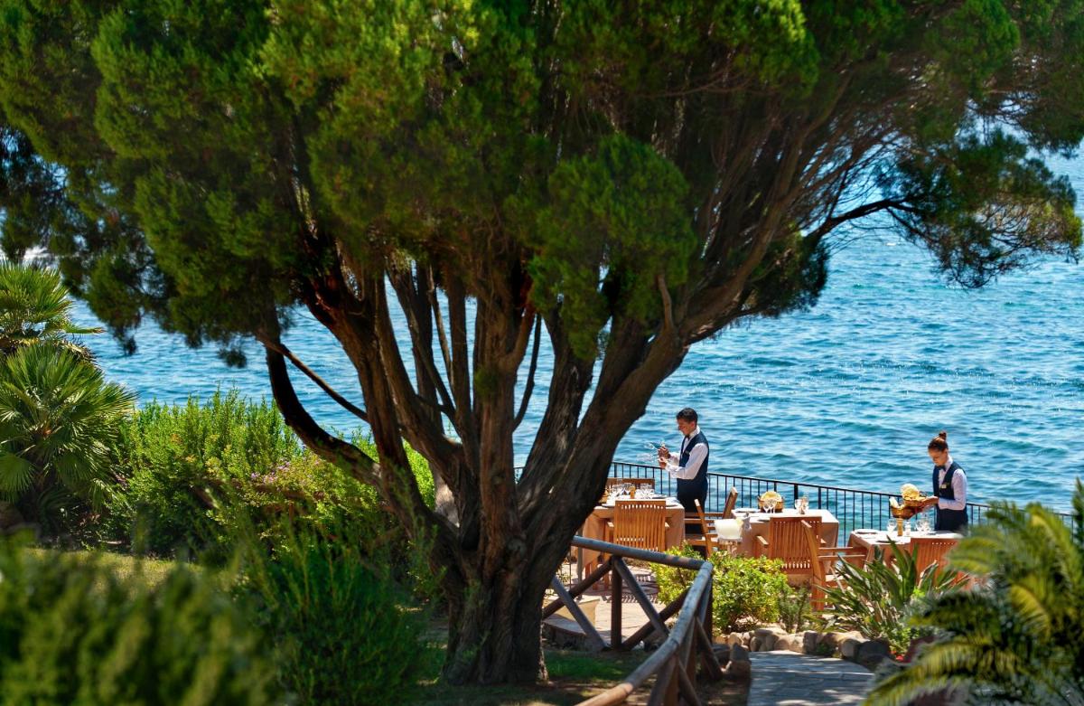 Il resort vanta due ristoranti. Il principale offre colazione e cena con un focus sulla cucina italiana e sarda, spesso con una vista panoramica sul mare. Il 'Grill Restaurant', a pochi passi dalla spiaggia, propone specialità di carne e pesce alla griglia in un ambiente informale ma raffinato. La struttura dispone di una piscina all'aperto con solarium e lettini, un campo da tennis e un'area giochi per bambini. È disponibile anche una spa che offre massaggi e trattamenti.