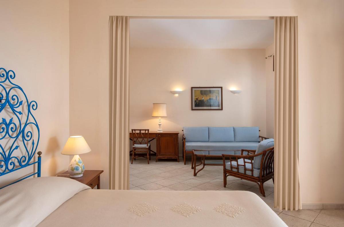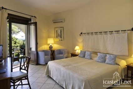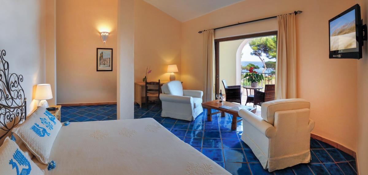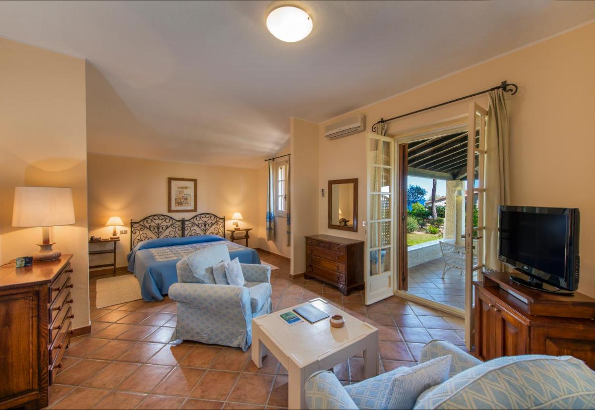 Le sistemazioni, circa 87 tra camere e ville, riflettono l'architettura tipica sarda, combinando comfort e design essenziale. Tutte le unità sono dotate di moderni comfort, inclusi aria condizionata, TV a schermo piatto, minibar, cassaforte e connessione Wi-Fi gratuita. Sono disponibili diverse tipologie, dalle Camere Classic con vista parco, alle lussuose ville (come Villa Marte e Villa Plutone), ideali per famiglie o gruppi numerosi.