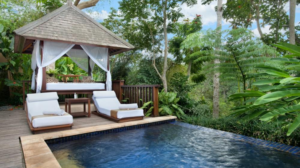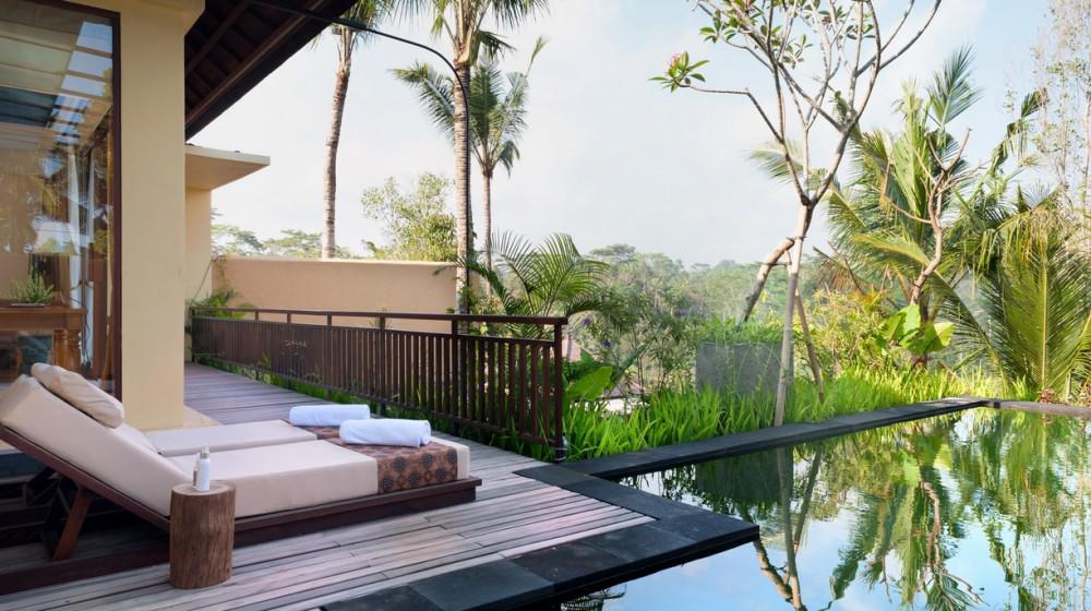 Il resort è noto per le sue lussuose ville, molte delle quali dispongono di una piscina a sfioro privata con vista sulla foresta tropicale. Il design fonde l'eleganza contemporanea con l'architettura balinese, utilizzando legni pregiati e tessuti locali, garantendo il massimo dell'intimità e dell'esclusività.