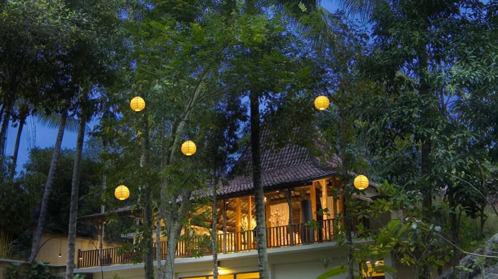 Il ristorante si impegna a offrire un'esperienza culinaria di alta qualità, con piatti che combinano sapori indonesiani e occidentali. La priorità è data all'uso di ingredienti biologici e freschi provenienti dai mercati locali e dal proprio orto, serviti in un contesto romantico con vista sulla valle.